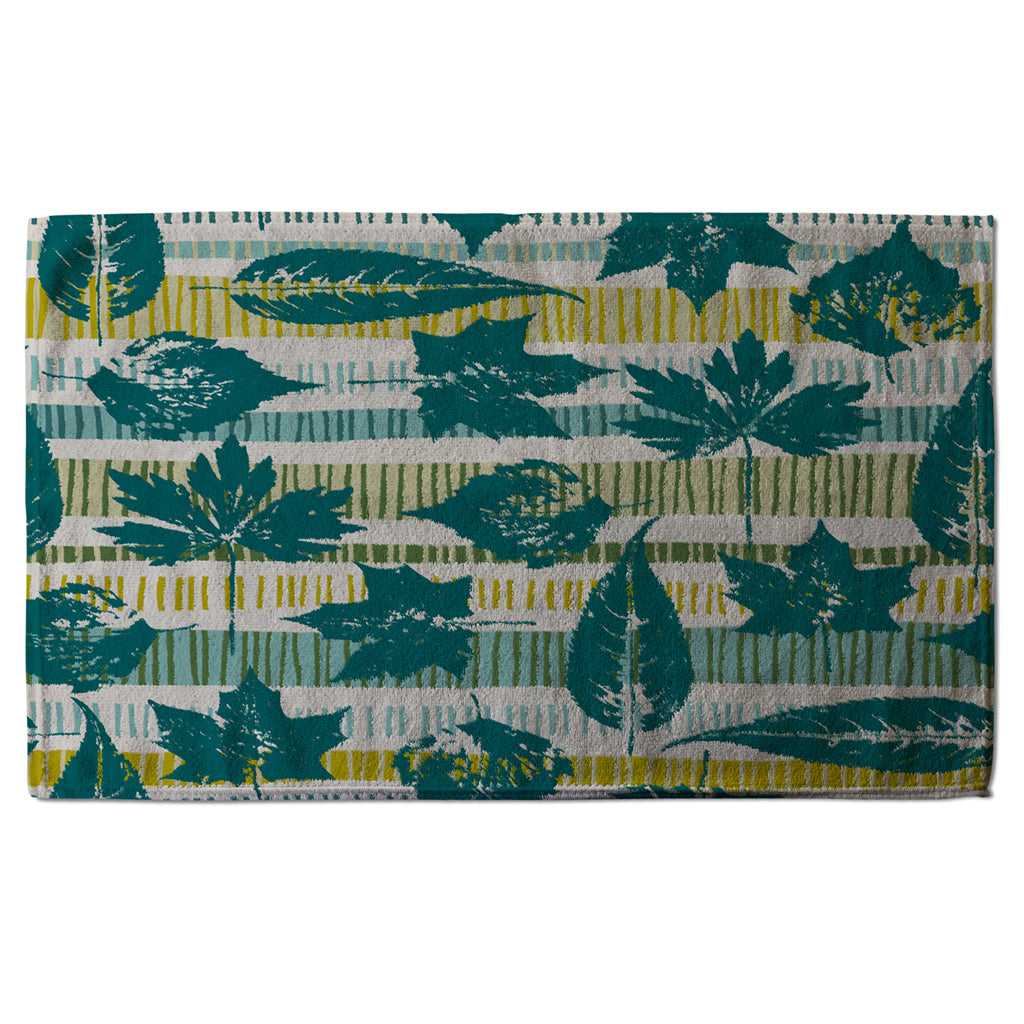 Autumn pattern with leaves on geometric background (Kitchen Towel)