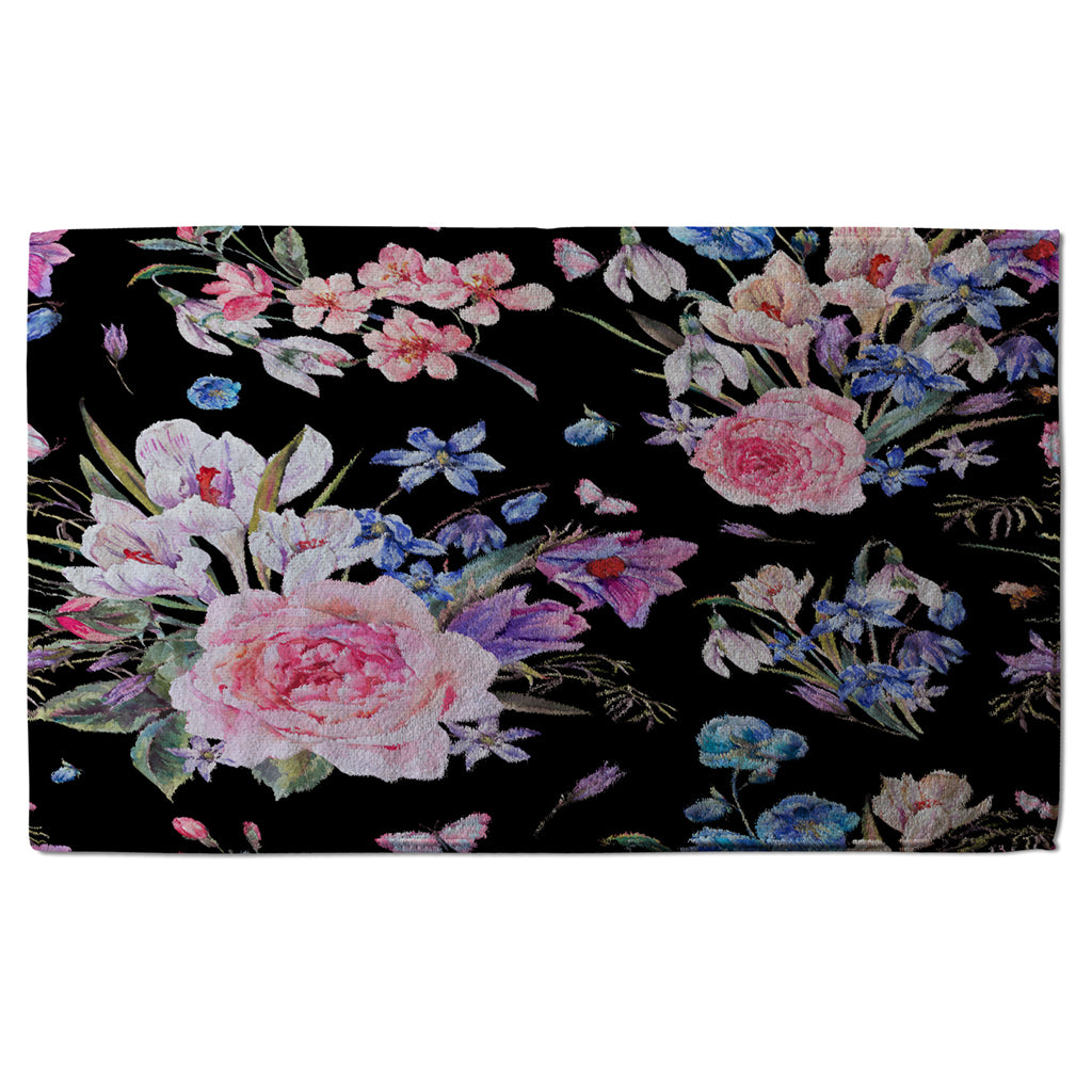 Bright Pink Flowers on Black (Kitchen Towel)