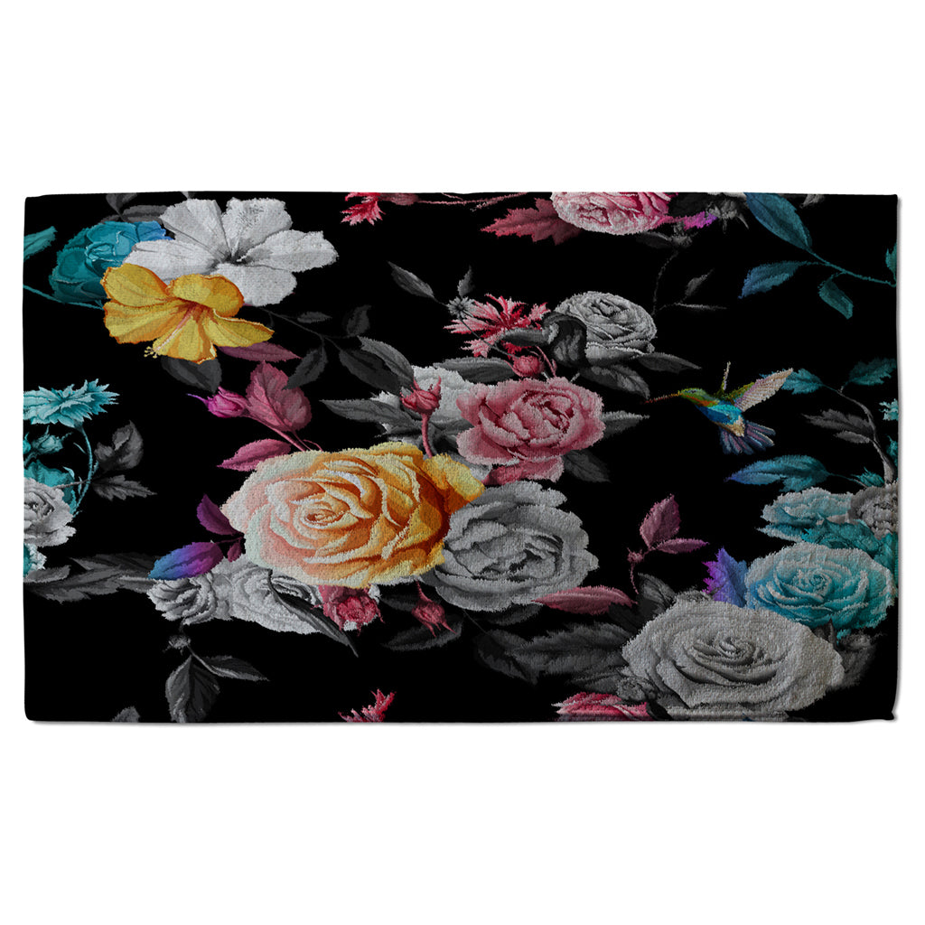 Humming bird, roses, peony with leaves (Kitchen Towel)