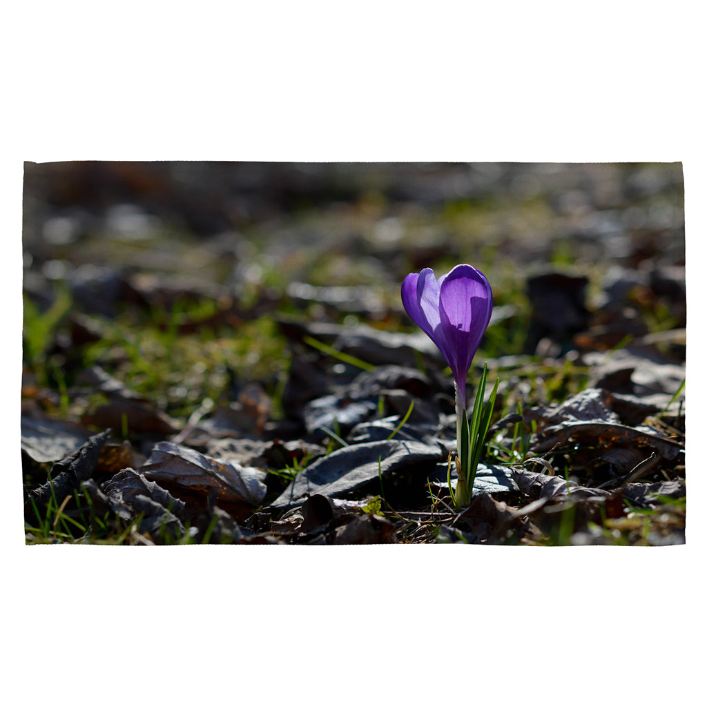 Purple crocus flowers, Colchicum, in a green grass meadow. Close up spring or autumn flower bloom in nature (Kitchen Towel)