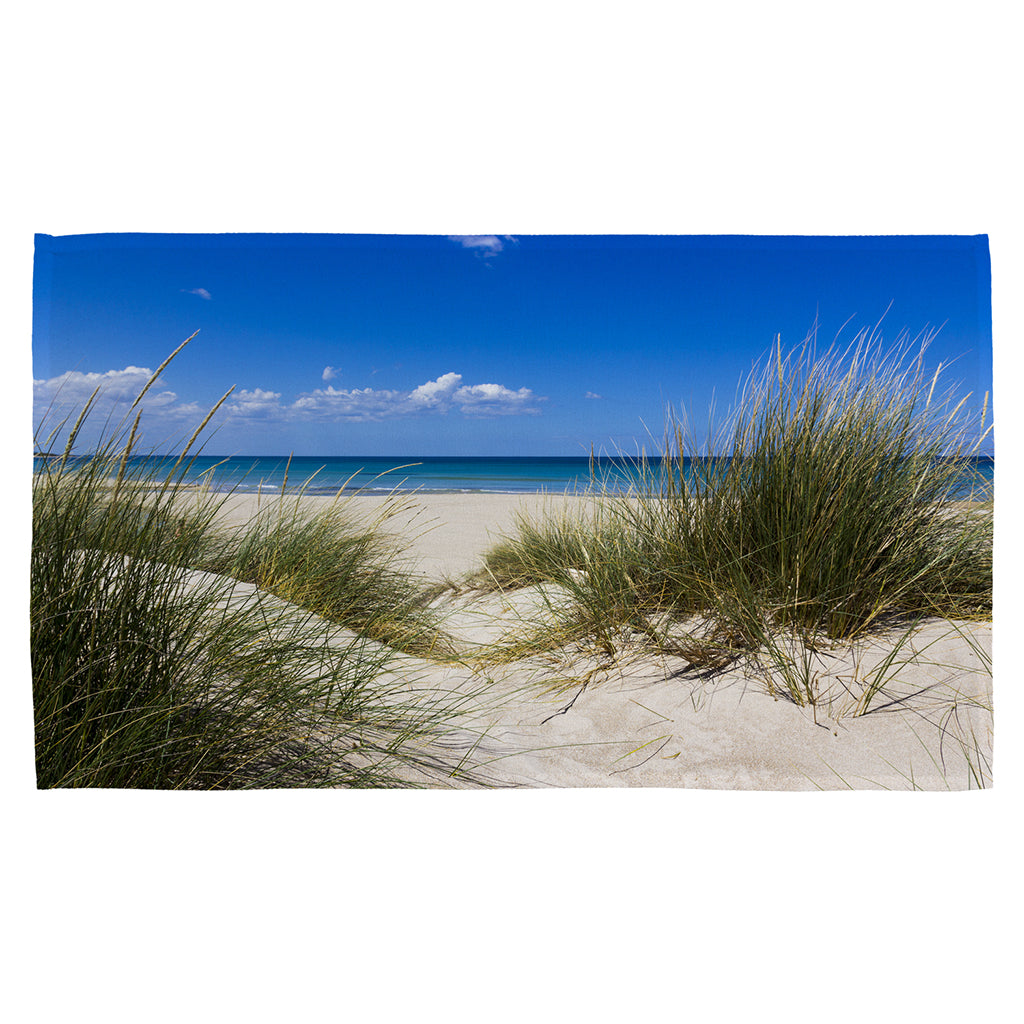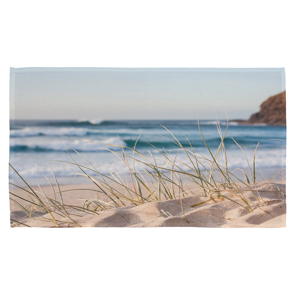 sunrise light on white sand beach with dune grass in Australia with turquoise surf waves of the pacific ocean (Kitchen Towel)