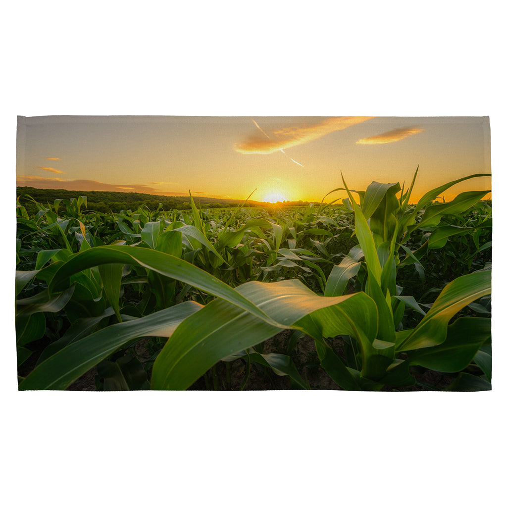 Young green corn growing on the field at sunset (Kitchen Towel) (Kitchen Towel)