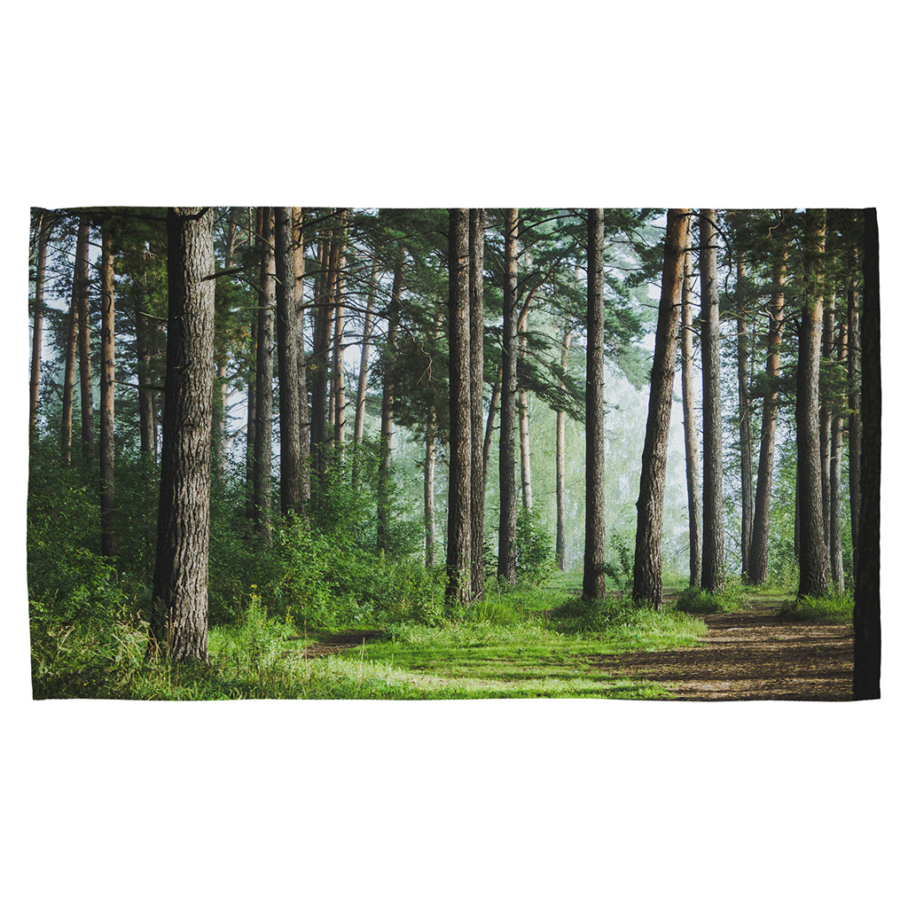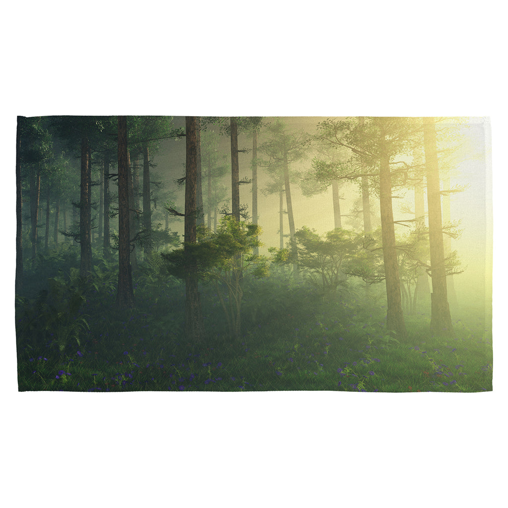 Forest in the morning in a fog in the sun, trees in a haze of light, glowing fog among the trees (Kitchen Towel)