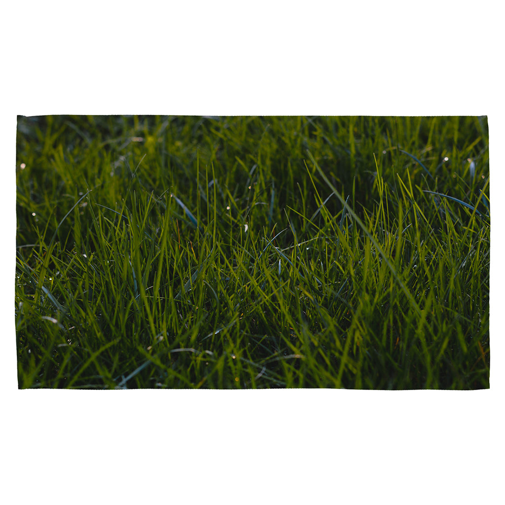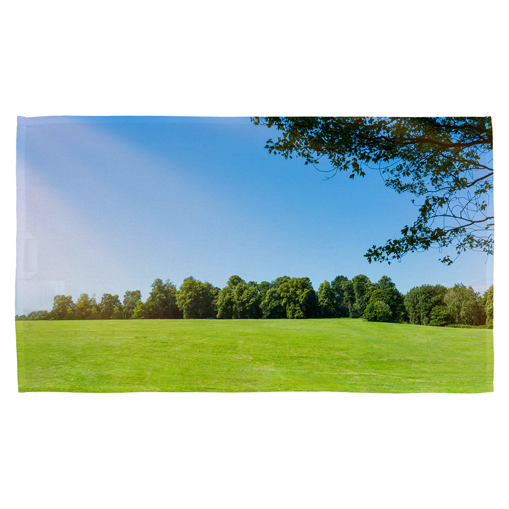 Beauty landscape of grass field with forest trees and environment public park with sun rays (Kitchen Towel)