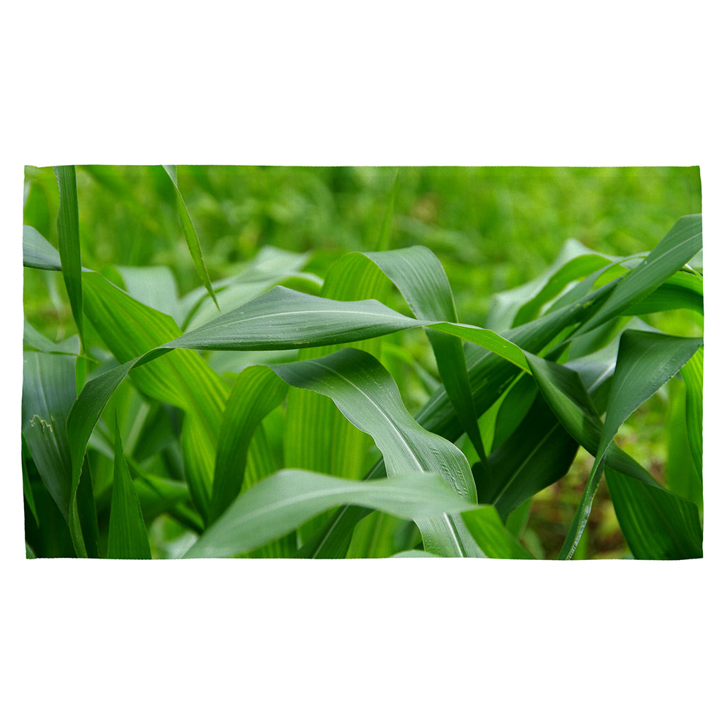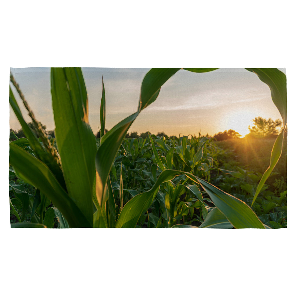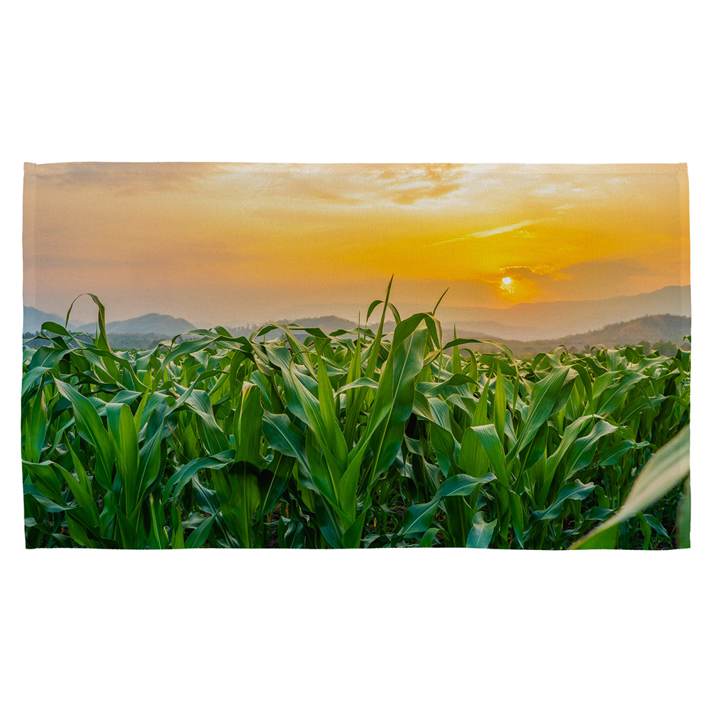green corn field in agricultural garden and light shines sunset (Kitchen Towel)