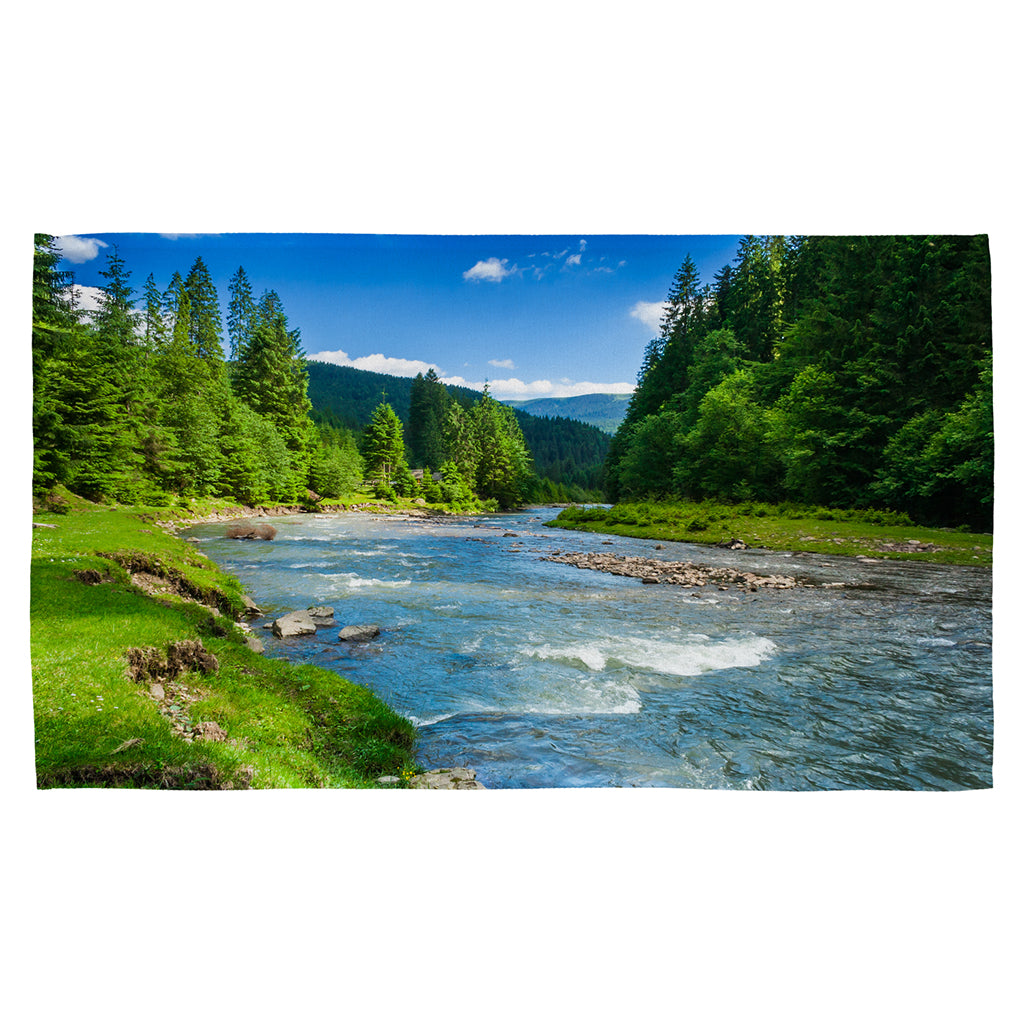 landscape with mountains, forest and a river in front. beautiful scenery (Kitchen Towel)