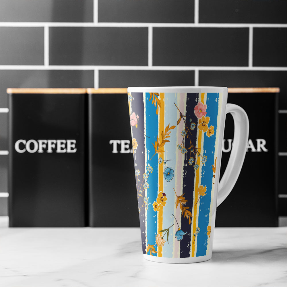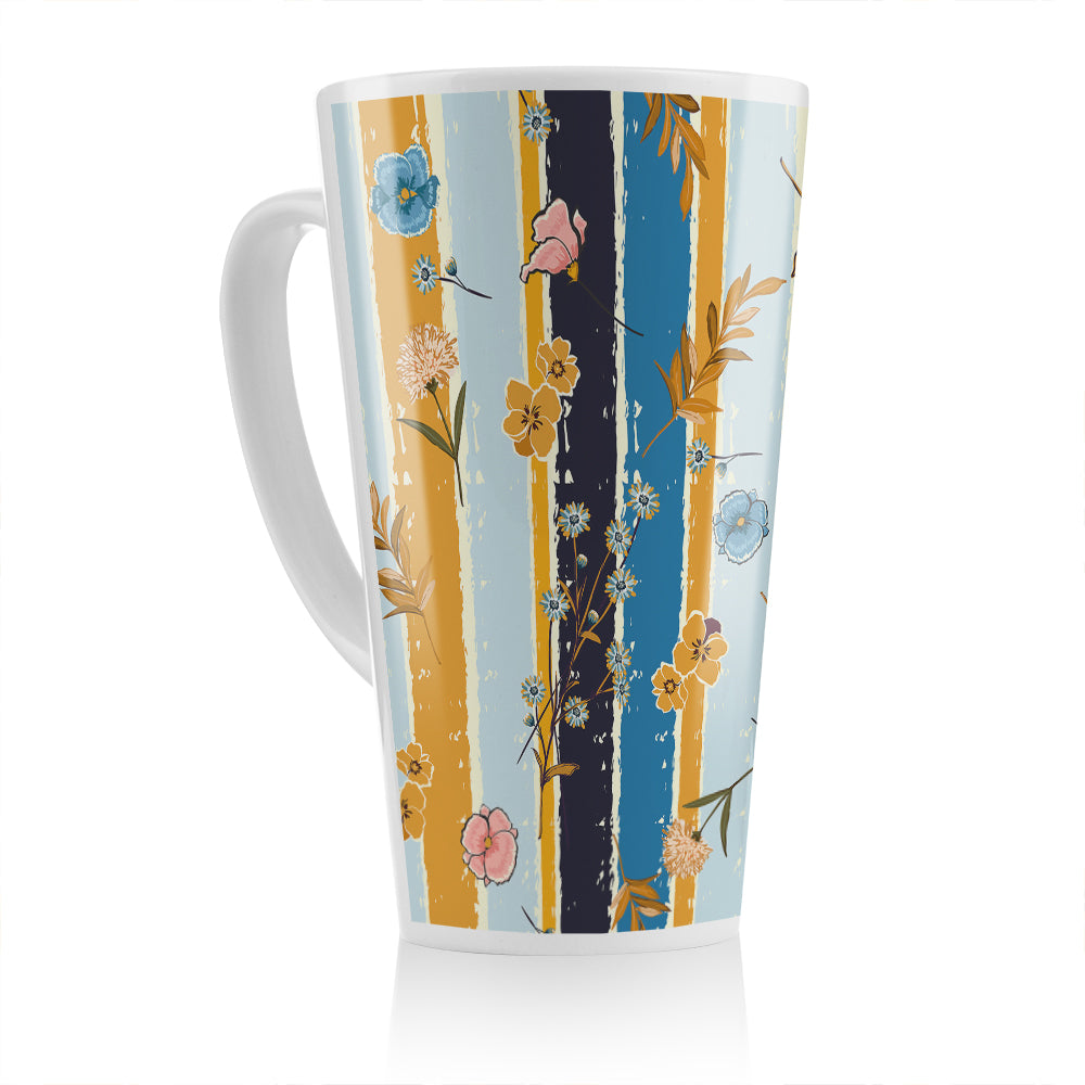 Beautiful Meadow Flowers On Candy Colorful Brush Stripe Latte Mug