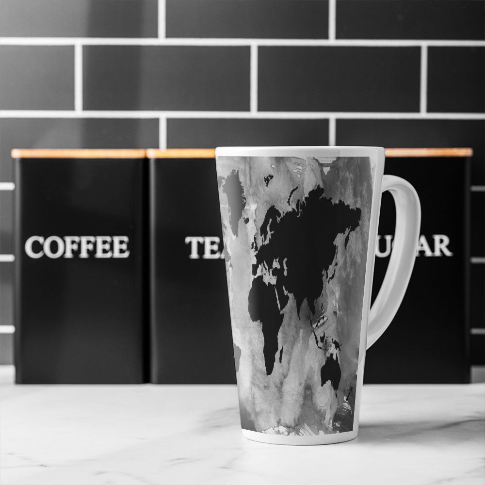 Black And White World Map Latte Mug