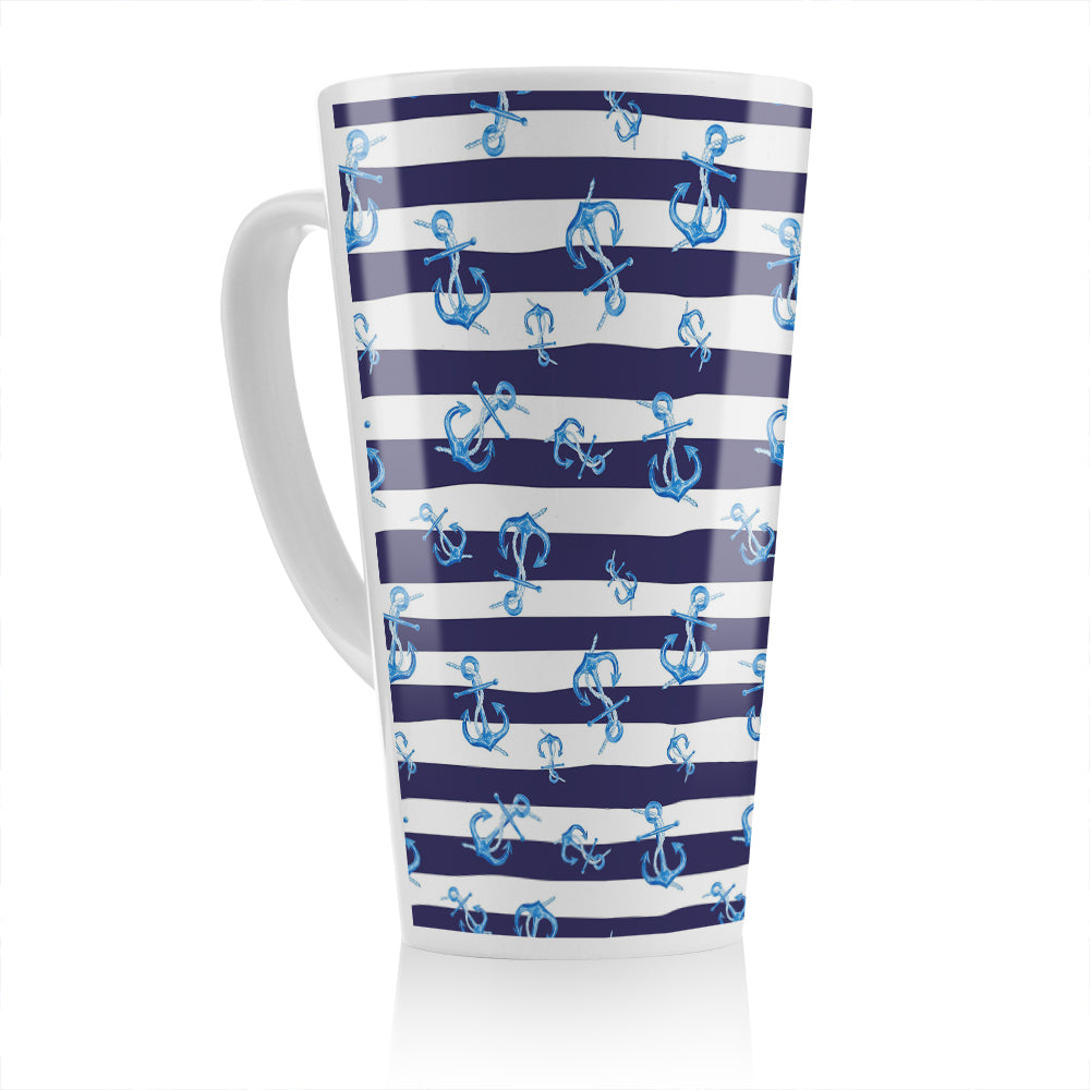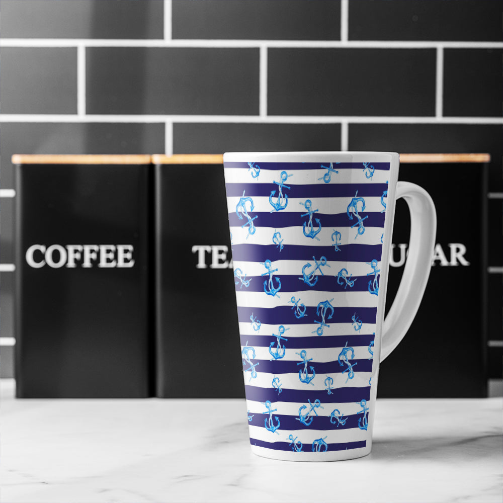 Blue Anchors On Navy Striped Latte Mug
