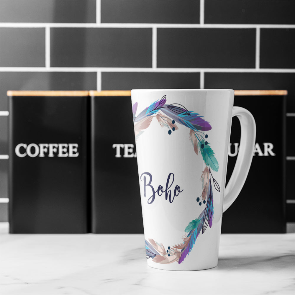 Boho Style Wreath Feathers Latte Mug