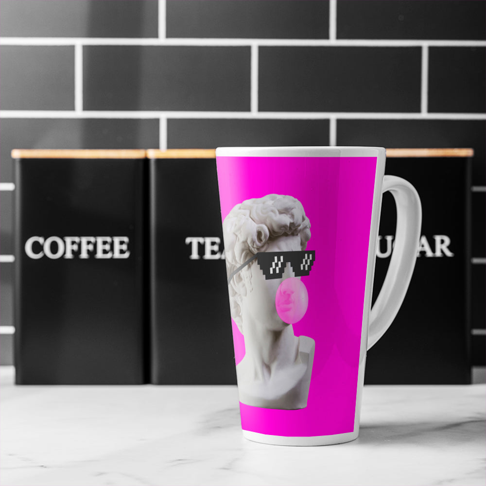 Plaster statue, David's head in pixel glasses Designer Latte Mug