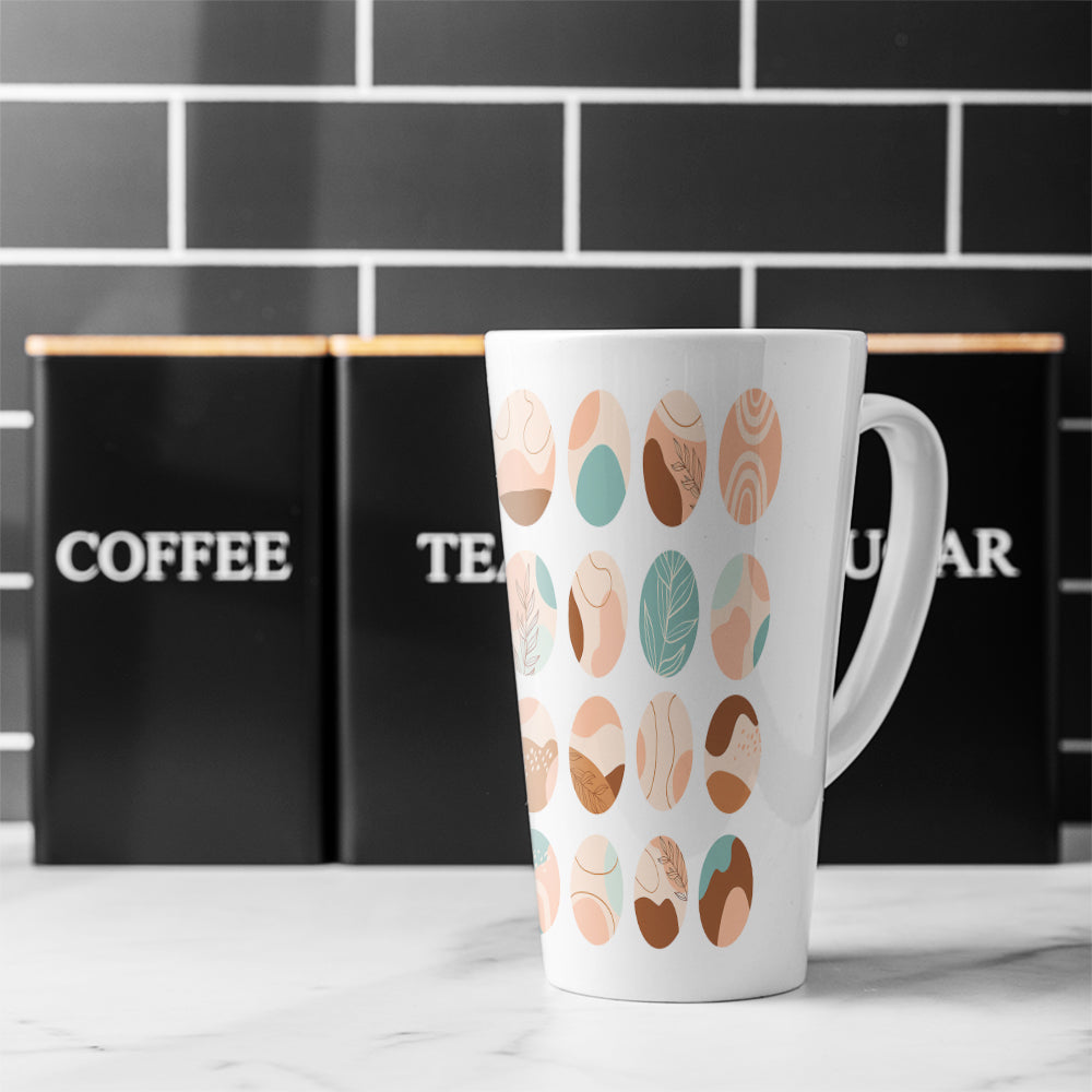 Round texture and floral icons in pastel colours Designer Latte Mug