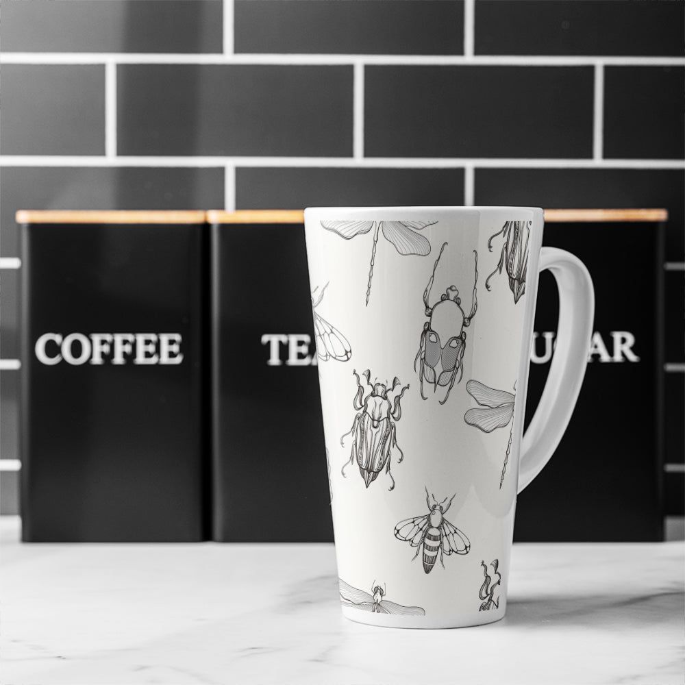 Sketch Of Scarab Beetle May Bug Bee And Dragonfly Latte Mug