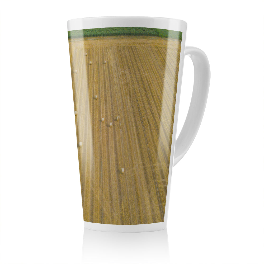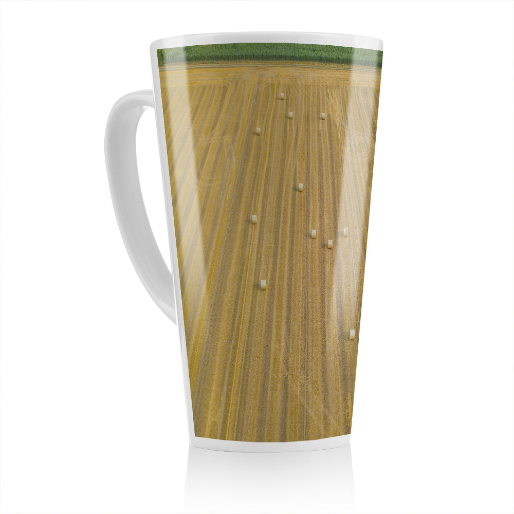 Straw bales of wheat lying on harvested field Designer Latte Mug