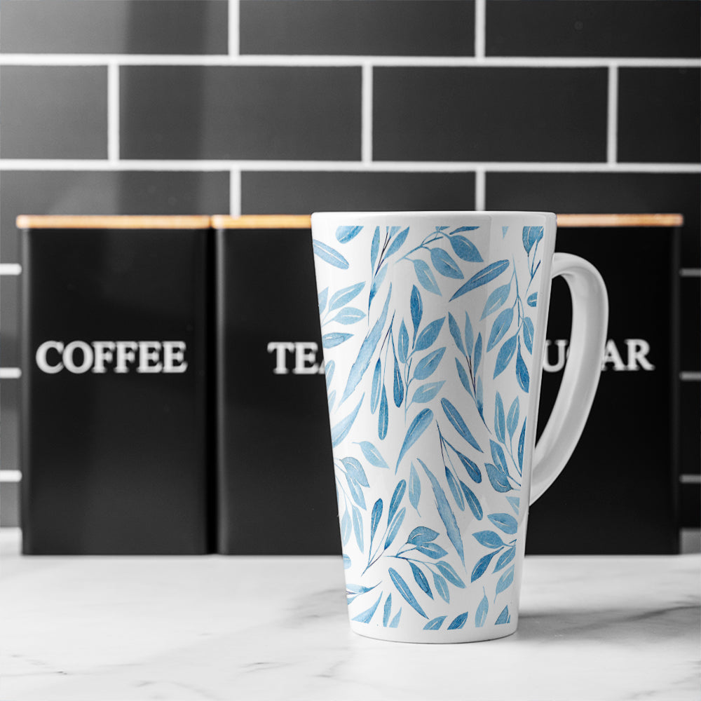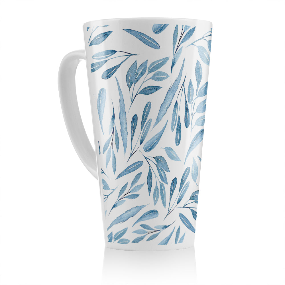 Watercolour Blue Branches With Leaves Latte Mug