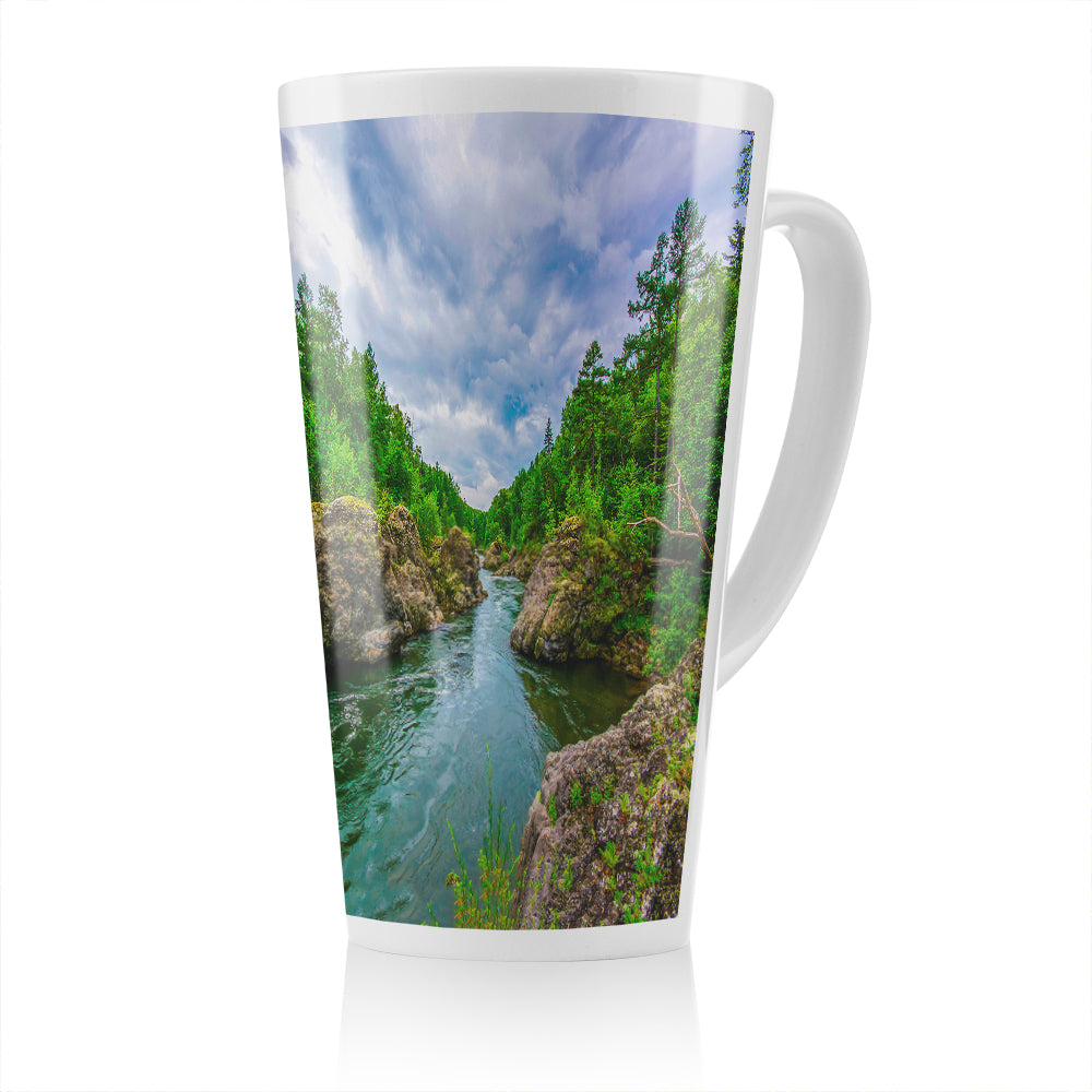 River in mountain forest landscape Designer Latte Mug