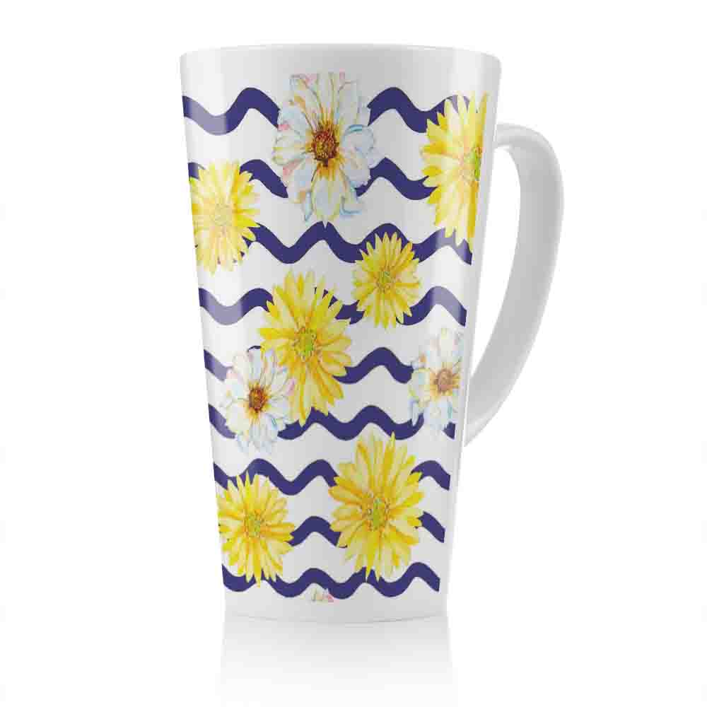 Bright Yellow Flowers & Zig Zags Latte Mug