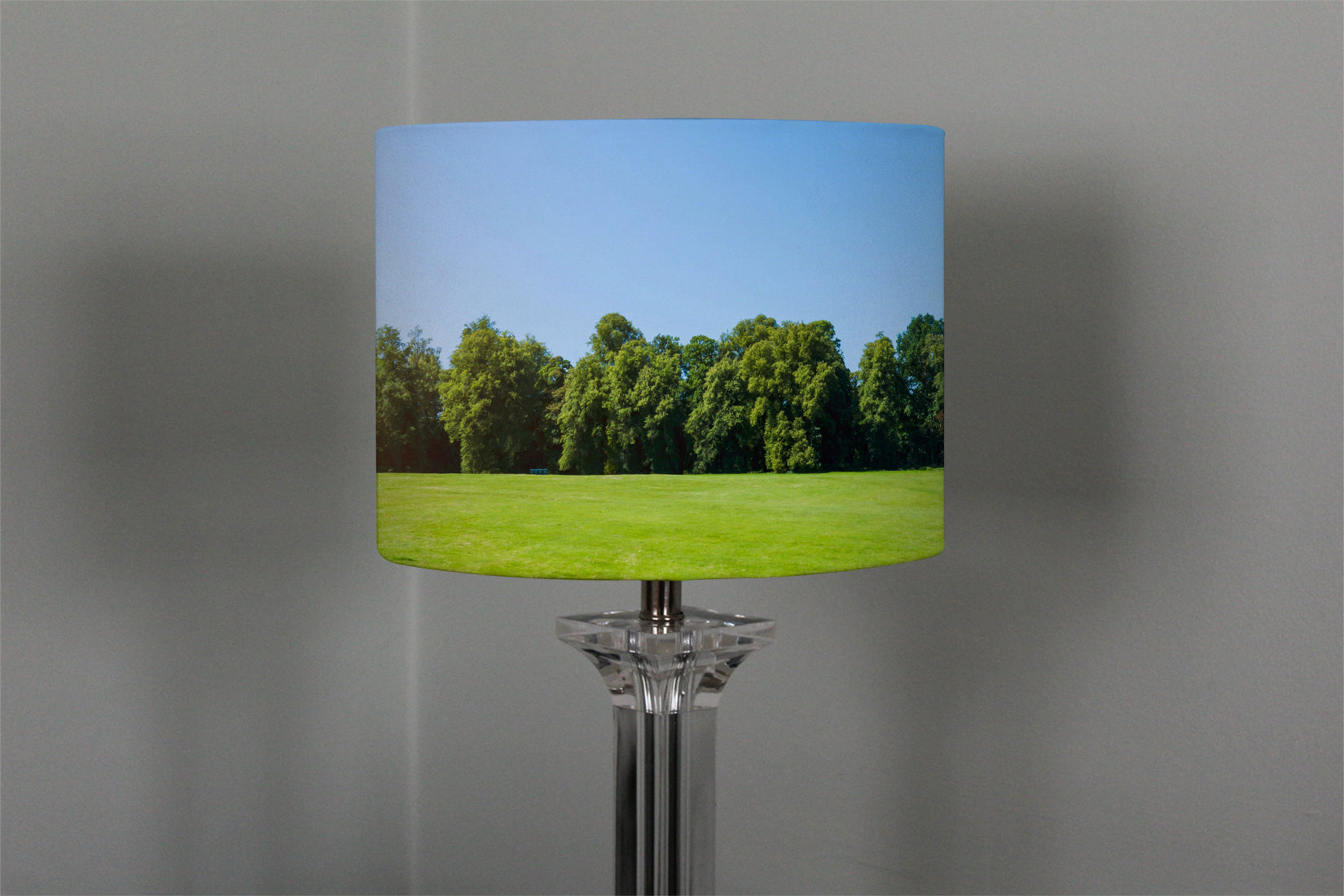 Beauty landscape of grass field with forest trees and environment public park with sun rays (Ceiling & Lamp Shade)