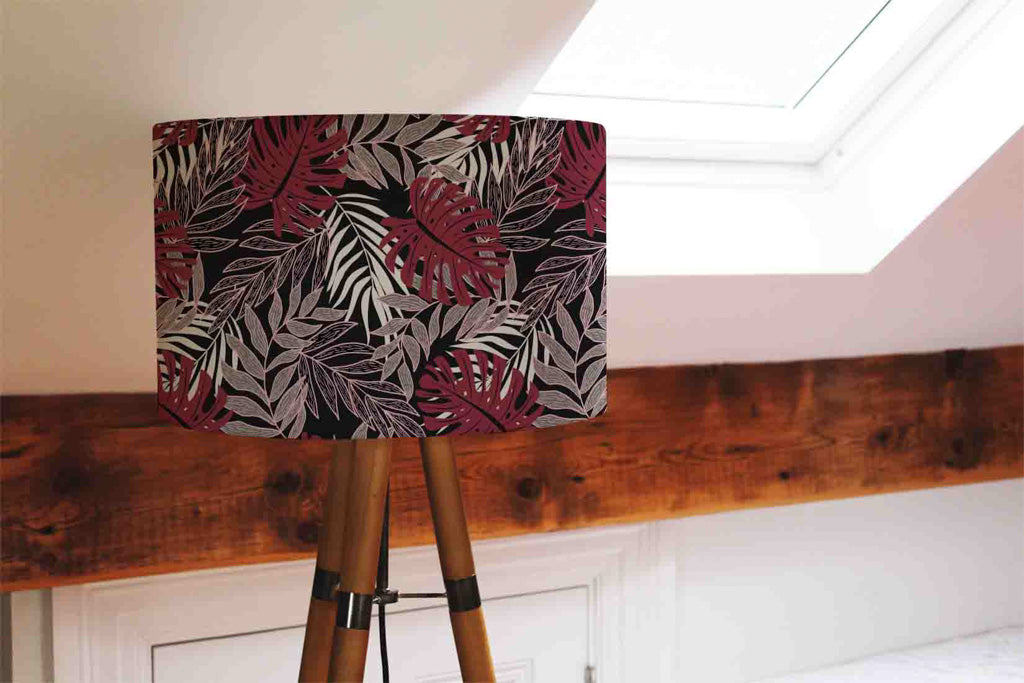 Tropical Leaves in Red, White & Grey (Ceiling & Lamp Shade)