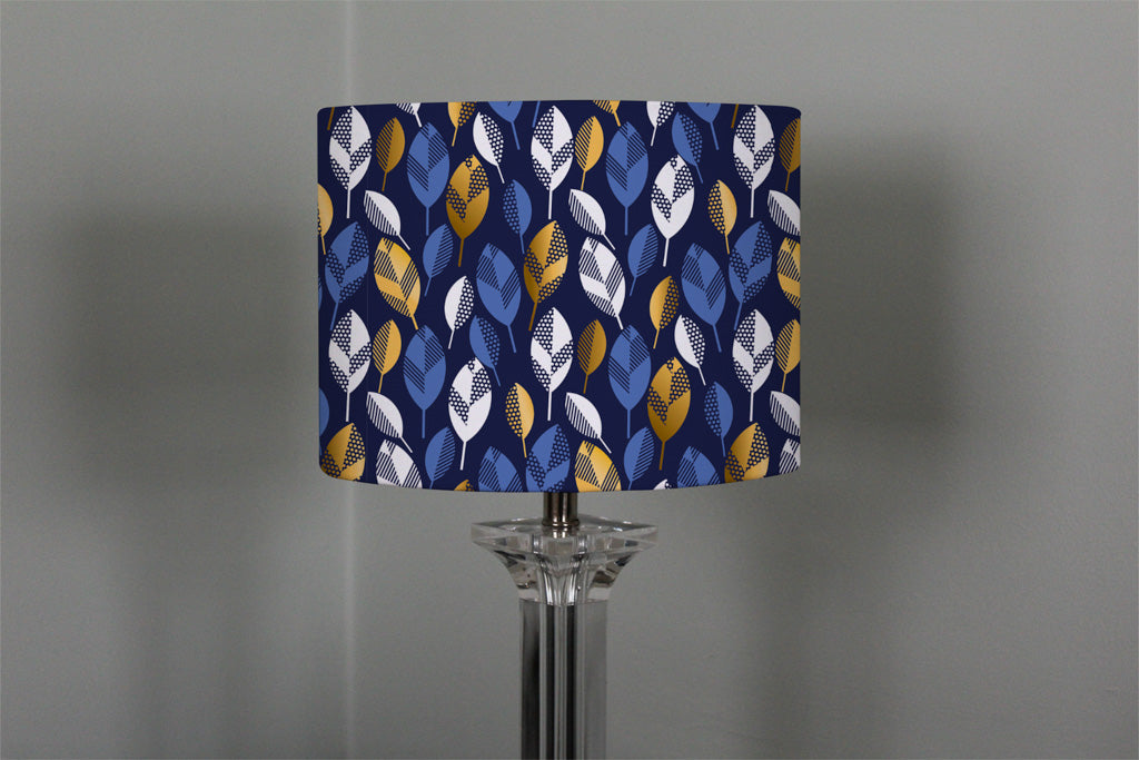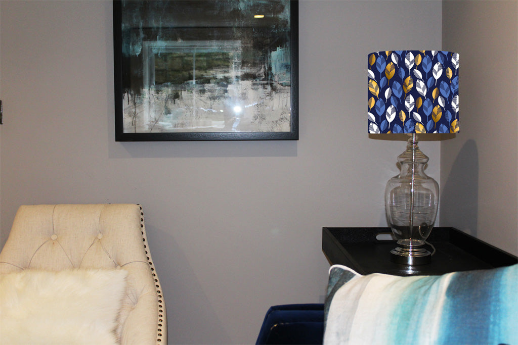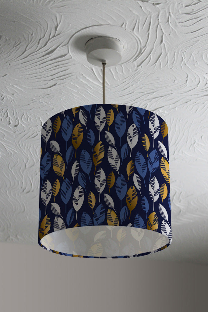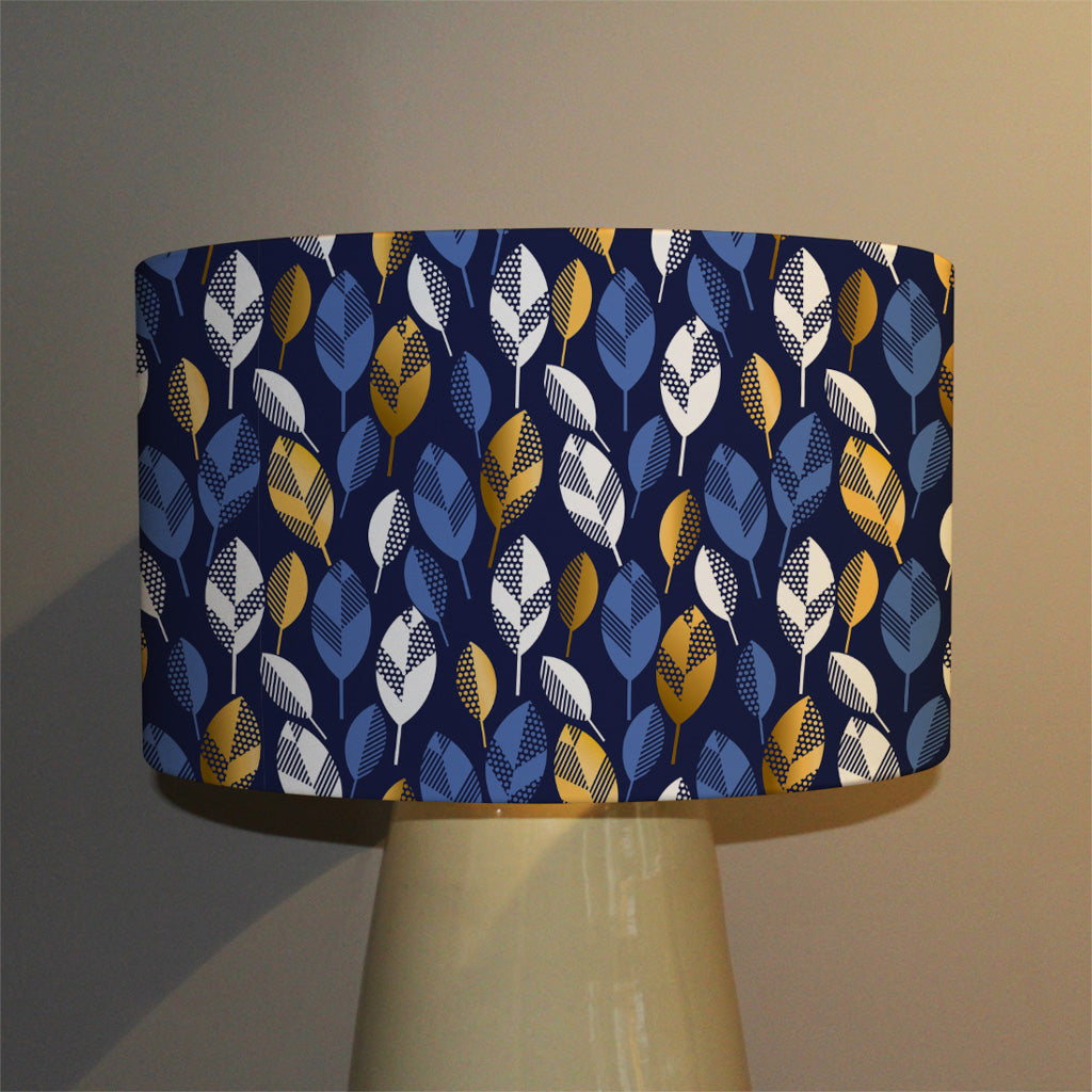 White, Blue & Gold Leaves on Navy Background (Ceiling & Lamp Shade)