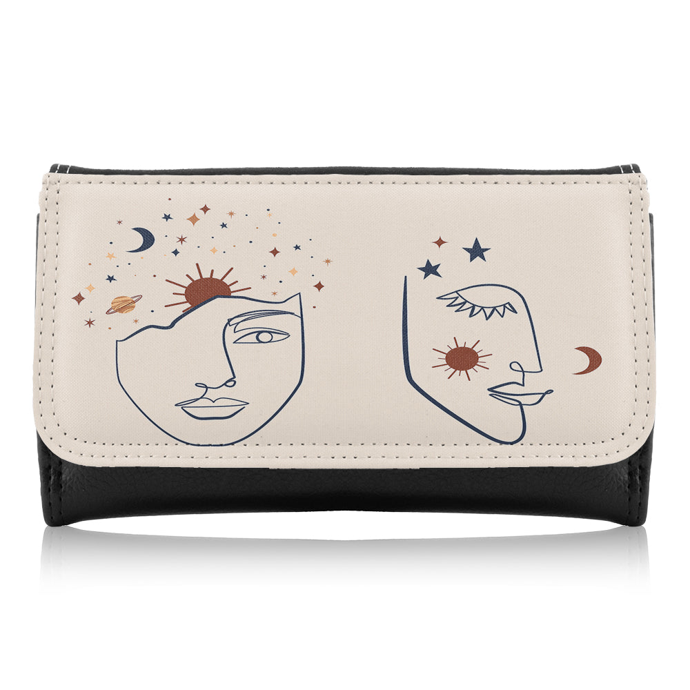 Celestial elements like stars, moon, sun and planets Designer Maxi Purse