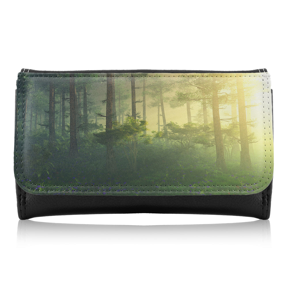 Sun, trees in a haze of light, glowing fog among the trees Designer Maxi Purse