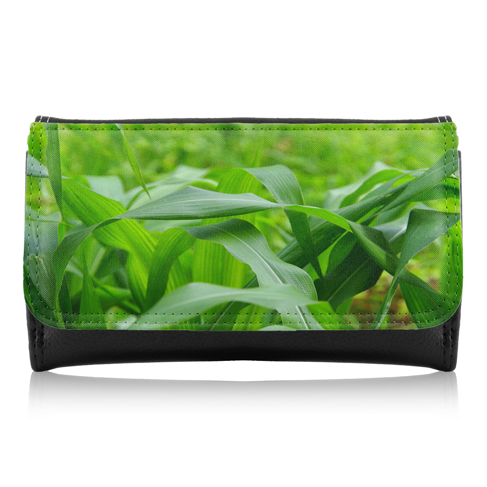 Natural dark green leaves, long slender green leaves Designer Maxi Purse