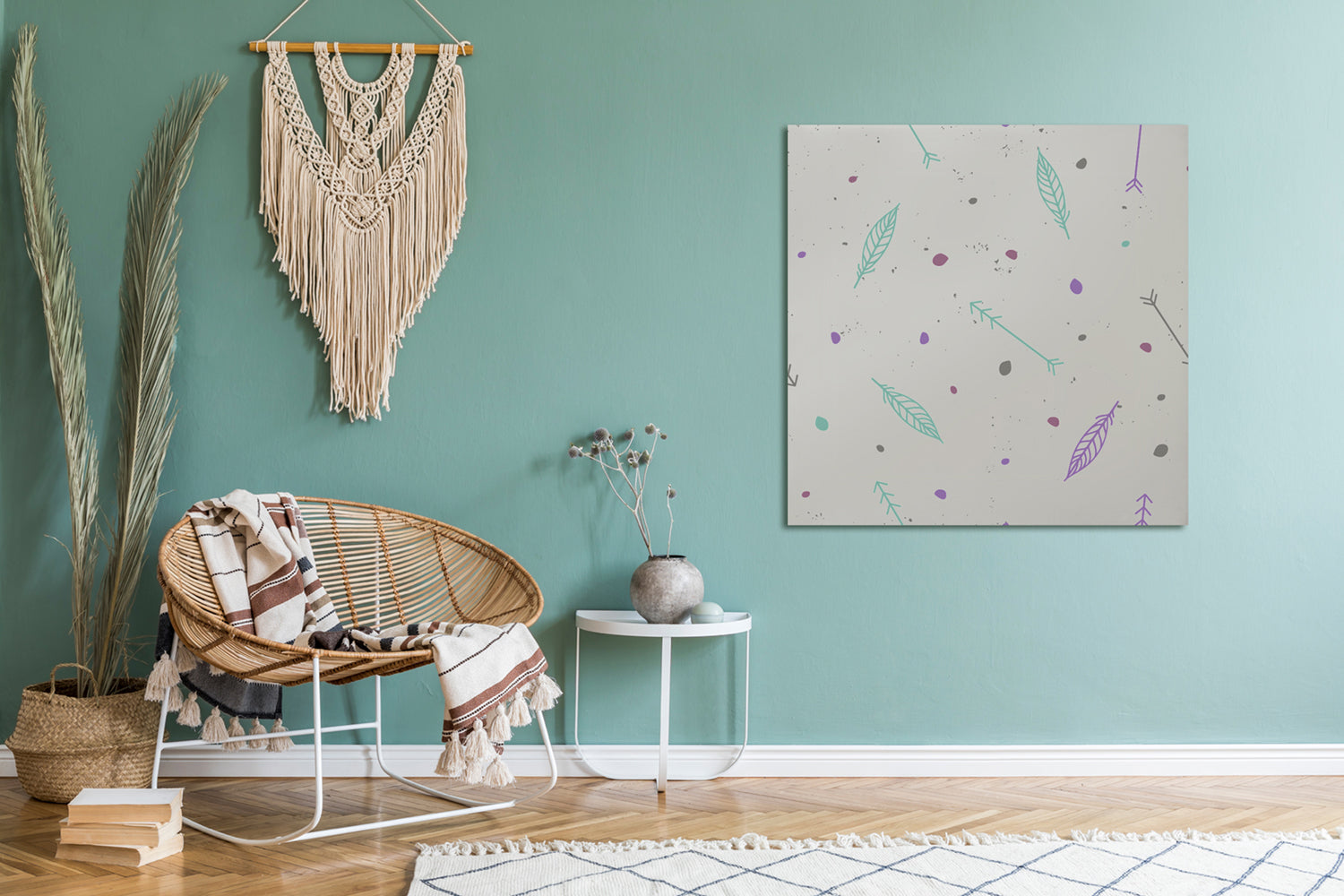Cute cartoon with feathers and arrows in boho style (Mirror Art Print)
