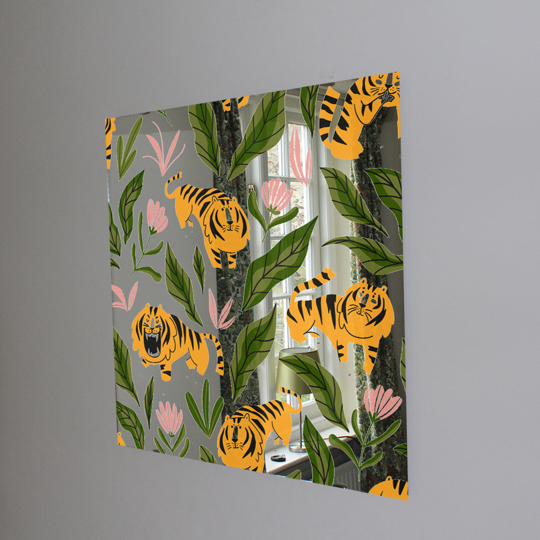 cute tigers and tropical leaves and flowers (Mirror Art Print)