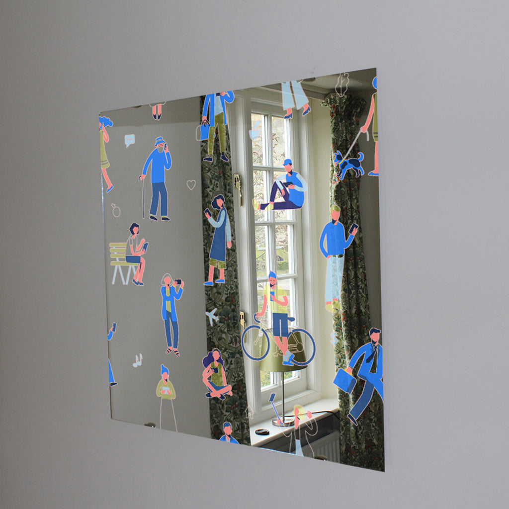 different people with mobile phones and gadgets Designer Mirror Art Print