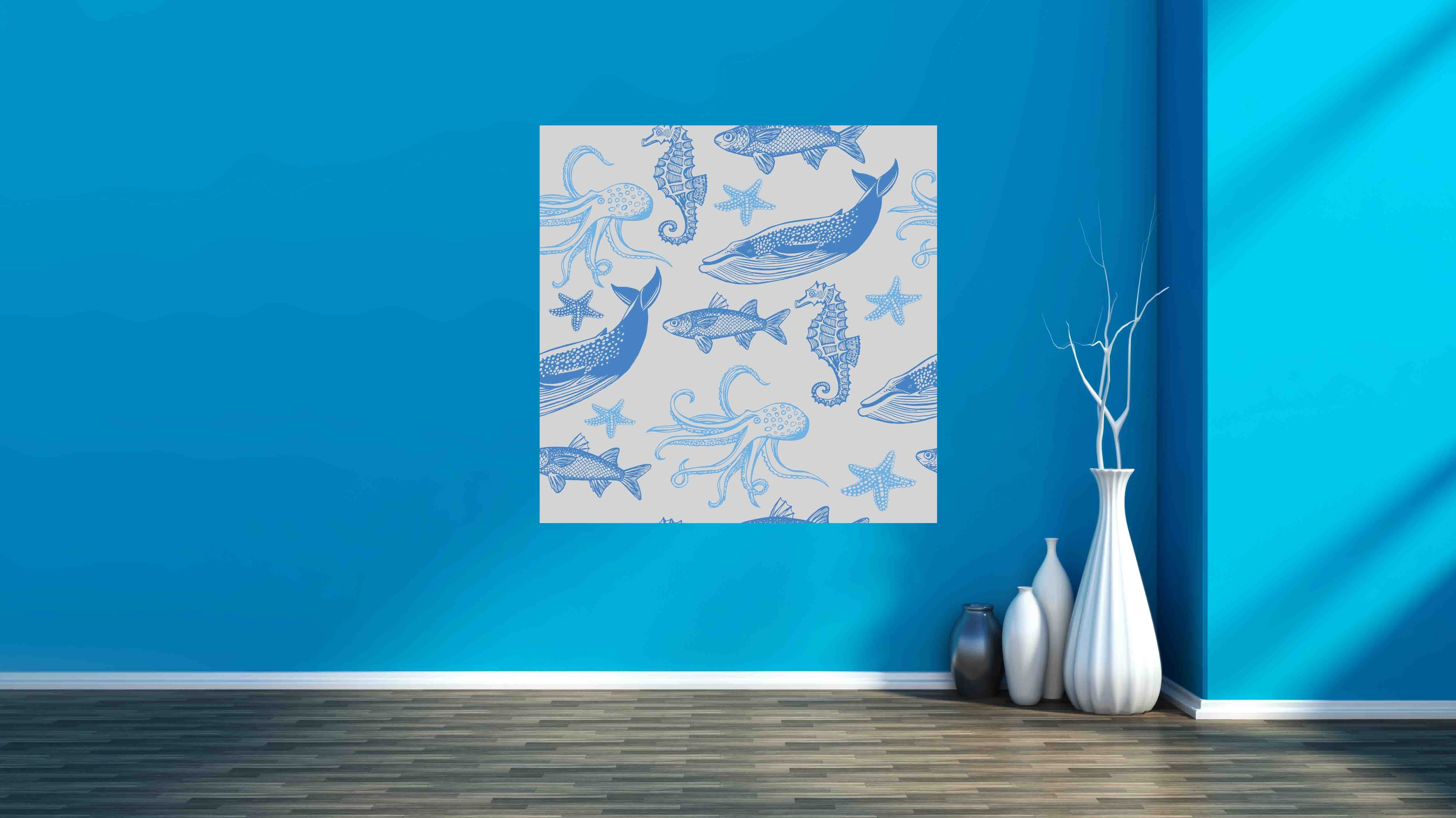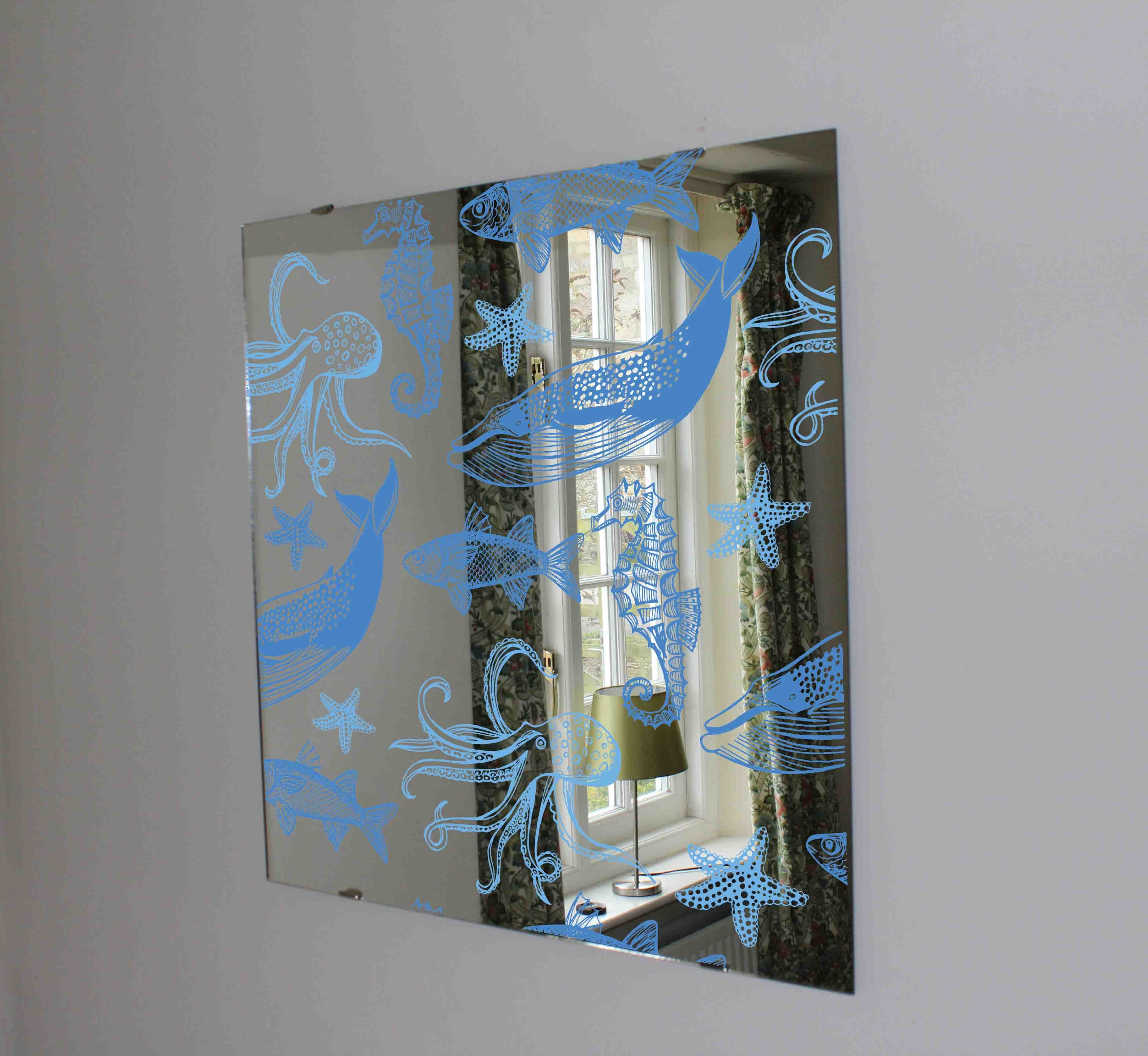 Fish, sea star, whale, sea horse, octopus (Mirror Art print)