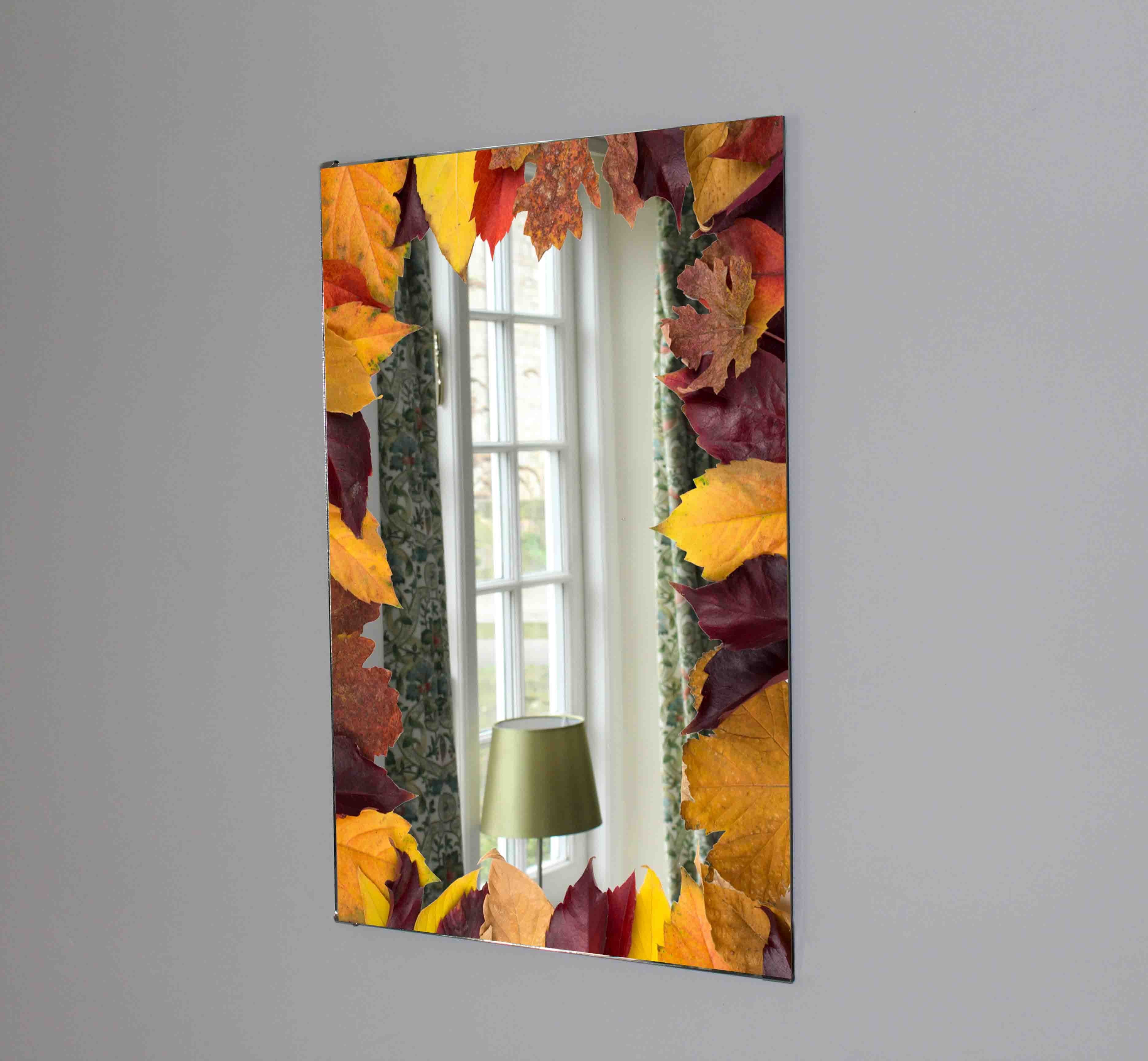 Frame made of autumn leaves falling (Mirror Art print)