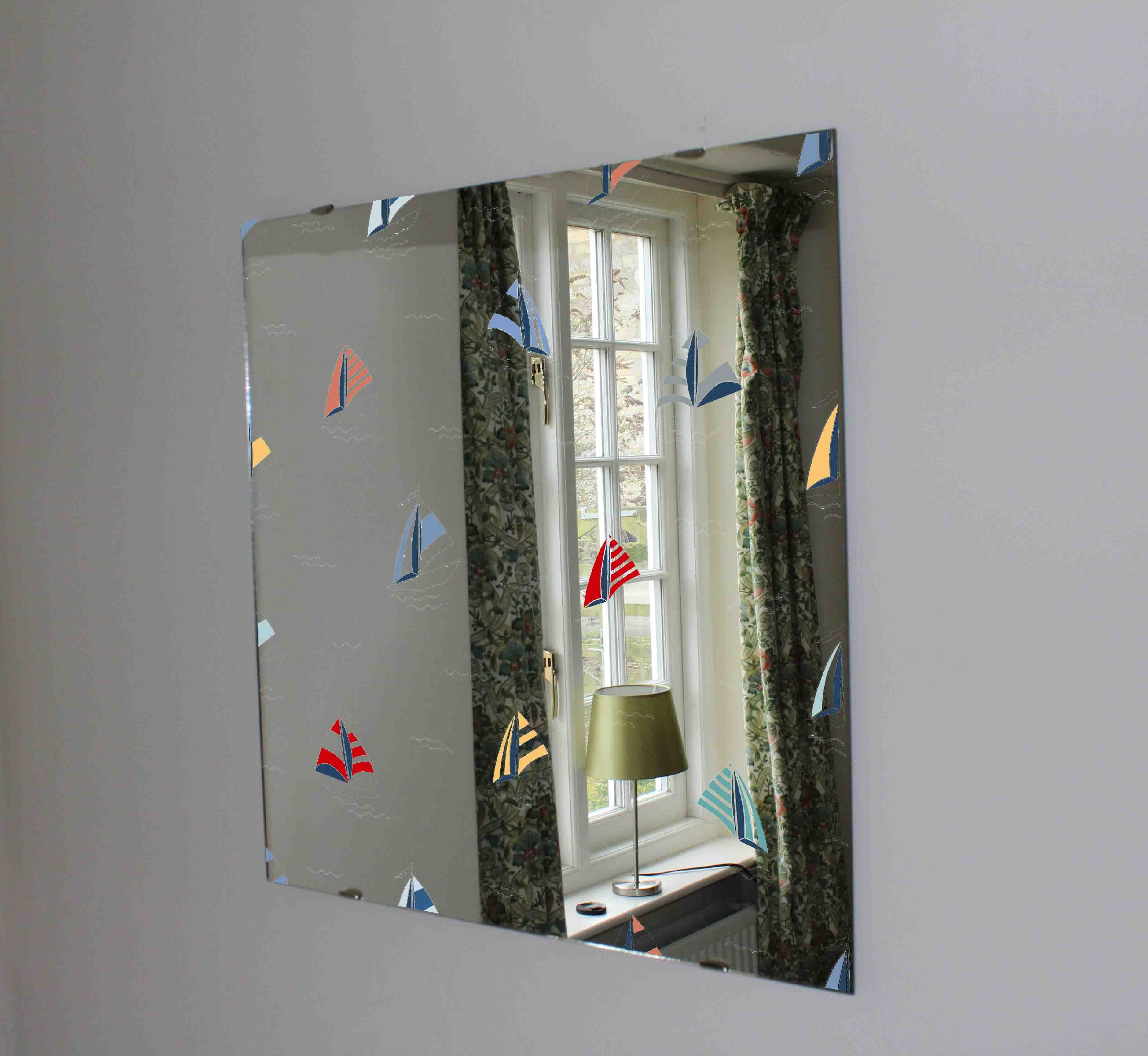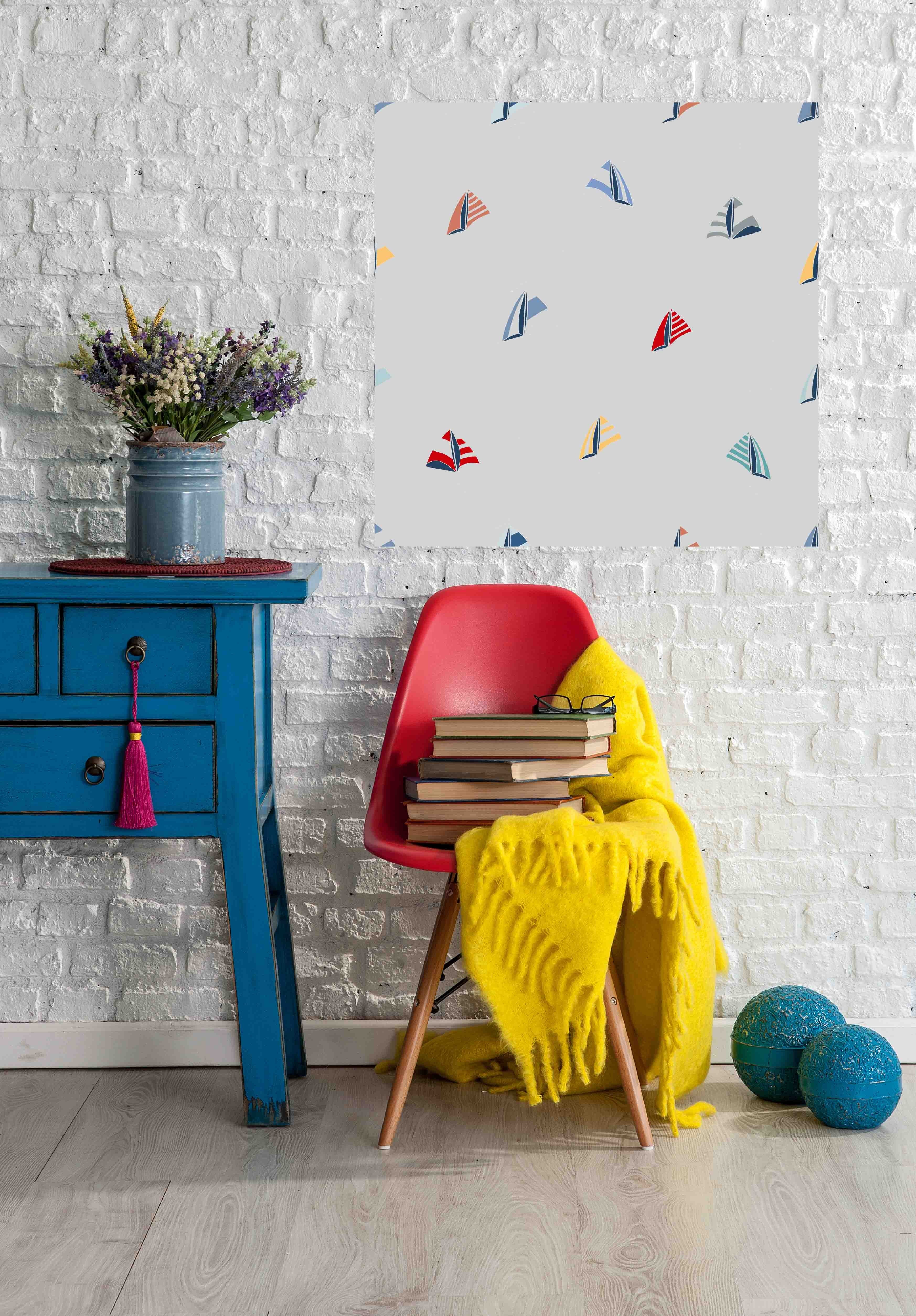 Marine seamless pattern with cartoon boats (Mirror Art print)