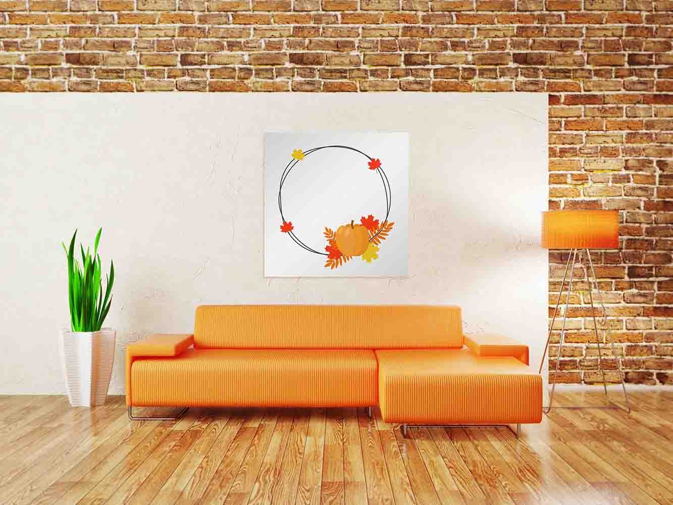 Pumpkin, fall leaves maple and rowan (Mirror Art print)