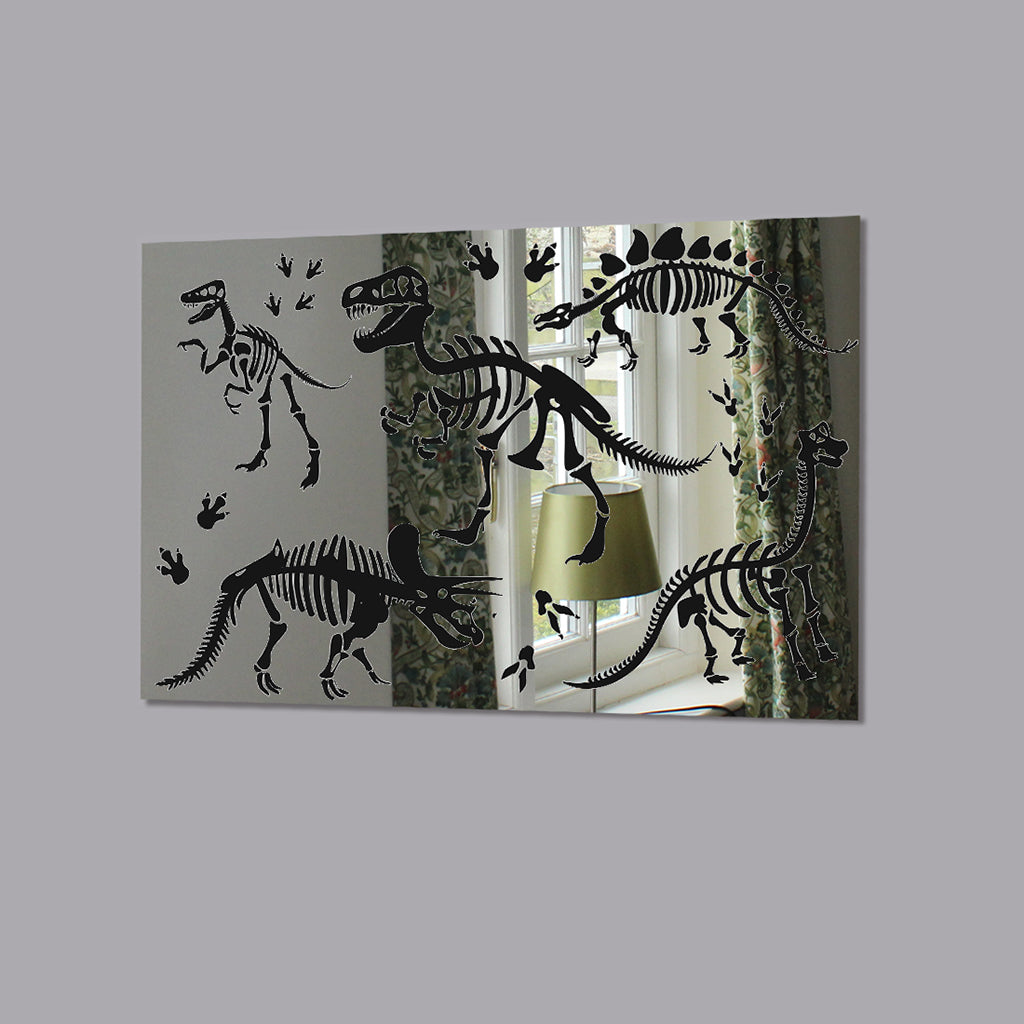 Stylish silhouette dinosaur skeletons,dinosaur bones. (Mirror Art Print)