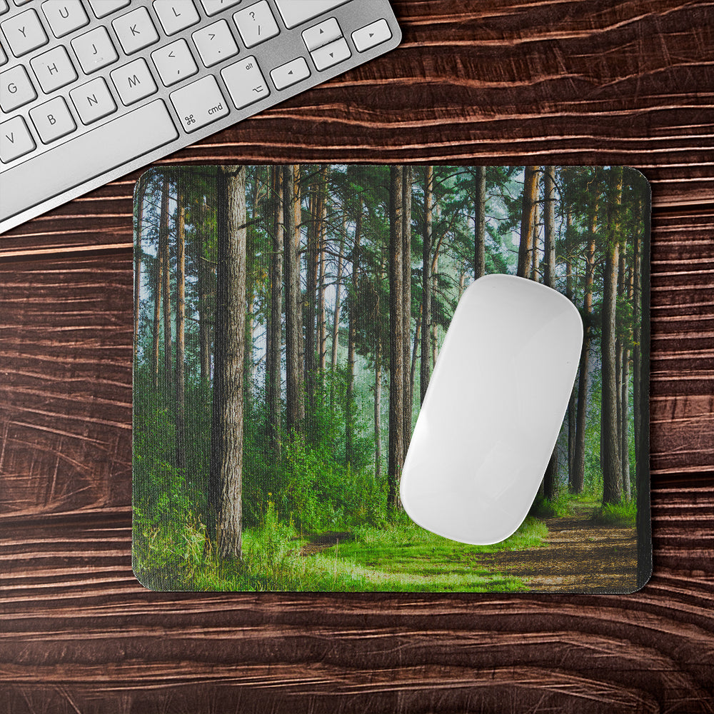 Beautiful summer forest with different trees Designer Mouse Mat is backordered and will ship as soon as it is back in stock.