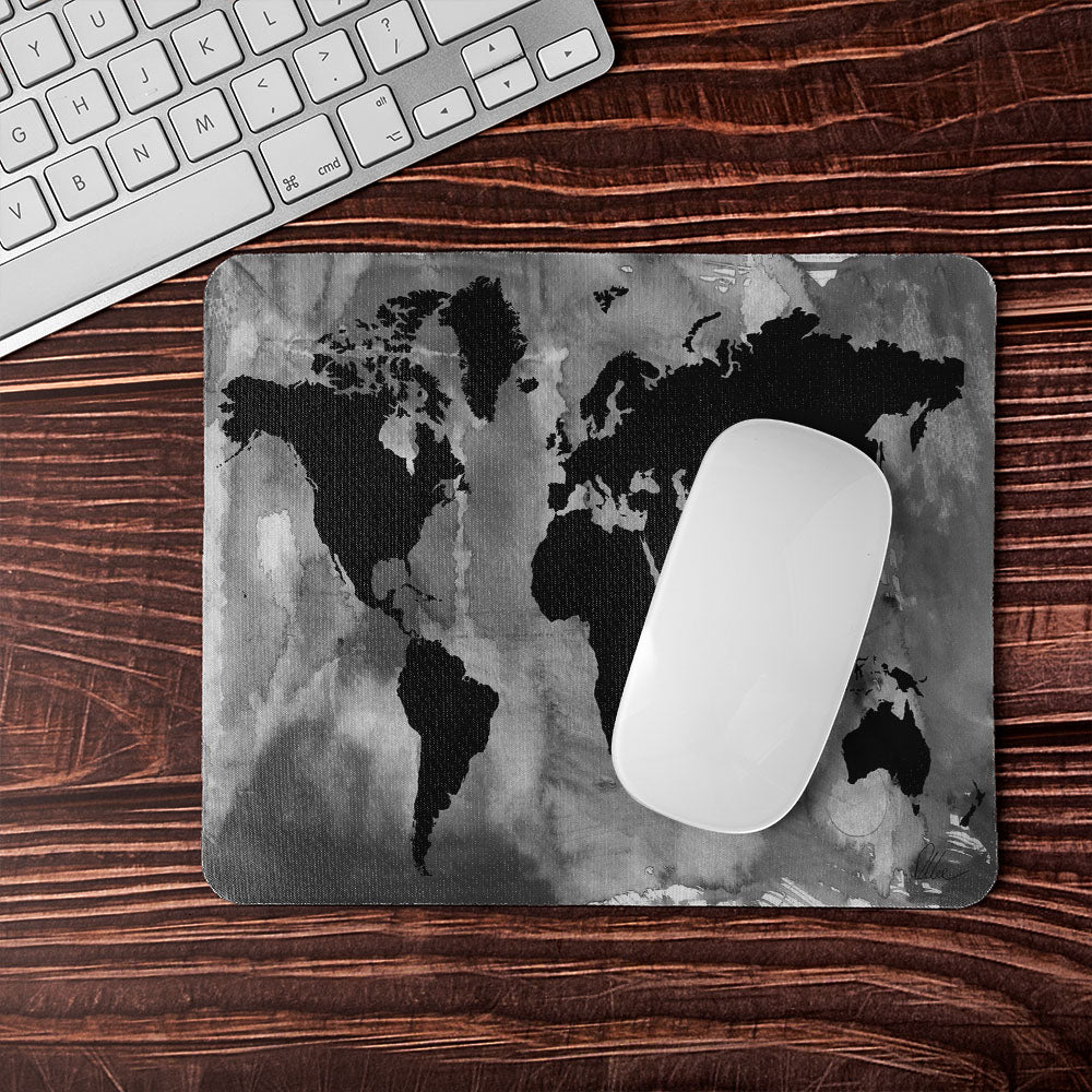 Black And White World Map Mouse Mat