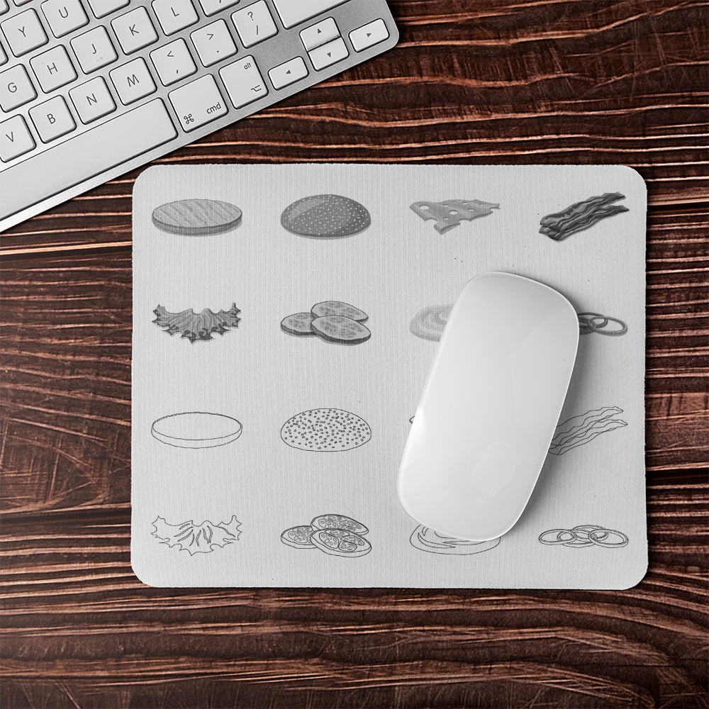 Burger and sandwich icon Designer Mouse Mat is backordered and will ship as soon as it is back in stock.