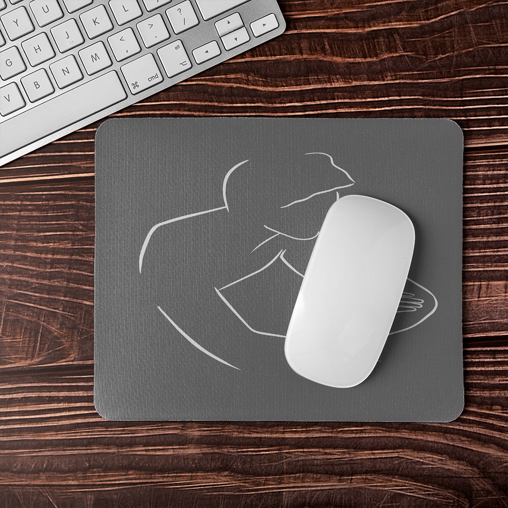 Drawing of a couple in one line Designer Mouse Mat is backordered and will ship as soon as it is back in stock.