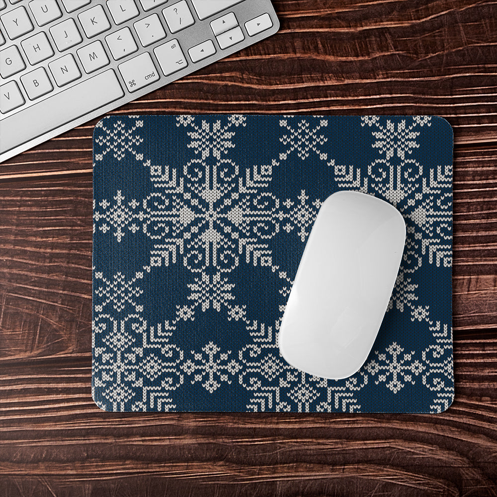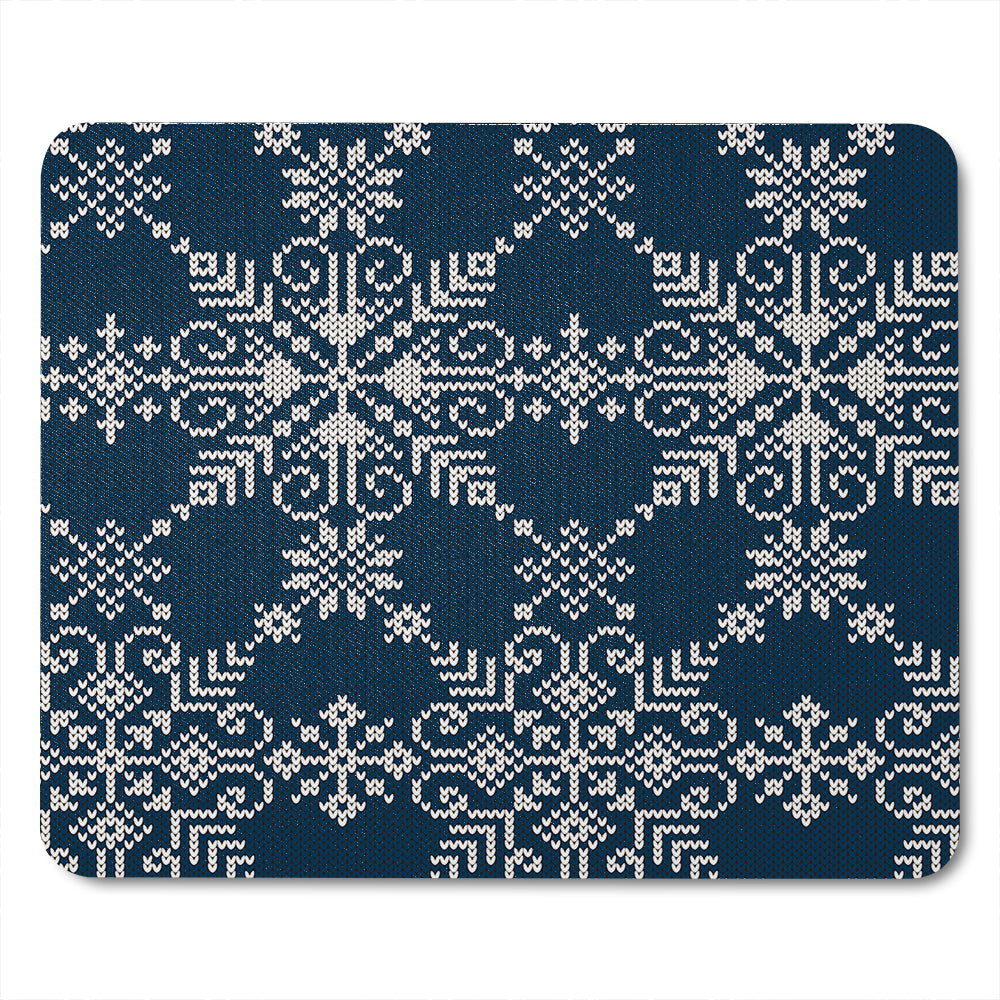 Knitted Pattern Of White Snowflakes Dining Mouse Mat