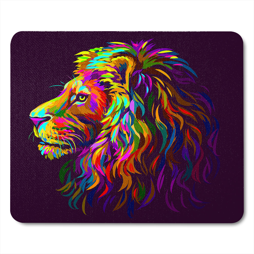 lion's head on a purple background in popart style Designer Mouse Mat is backordered and will ship as soon as it is back in stock.