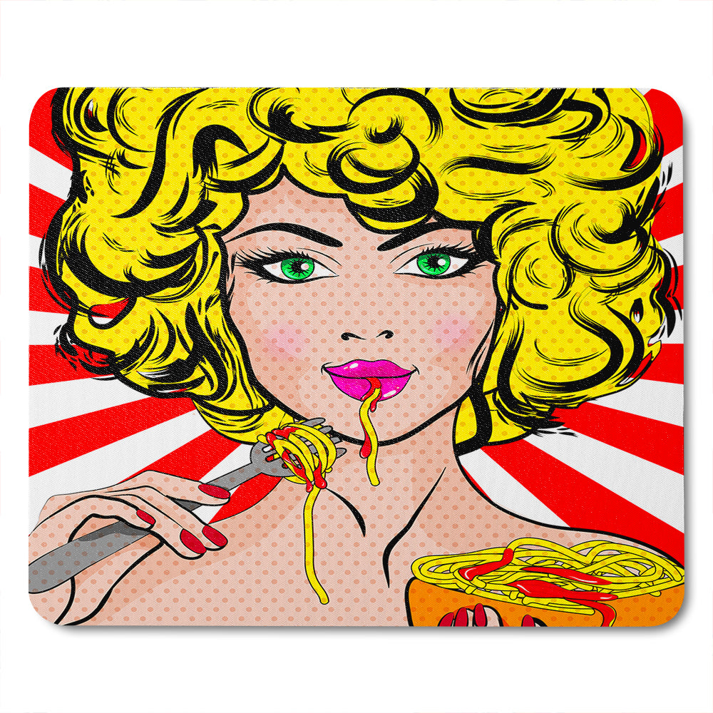 Pop Art Young woman Eating Spaghetti Designer Mug is backordered and will ship as soon as it is back in stock.