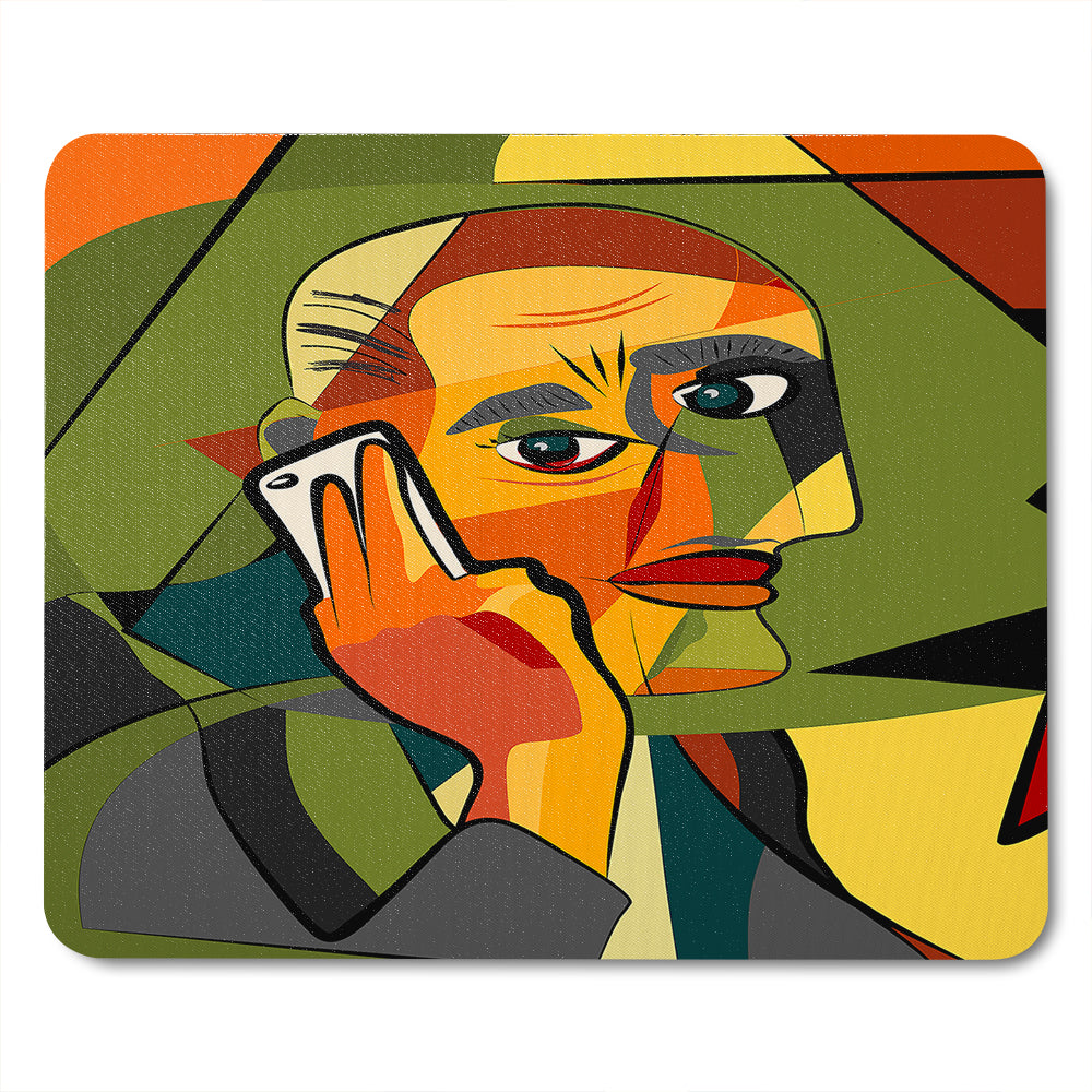 Portrait cubism art style,man calls on a phone Designer Mouse Mat is backordered and will ship as soon as it is back in stock.