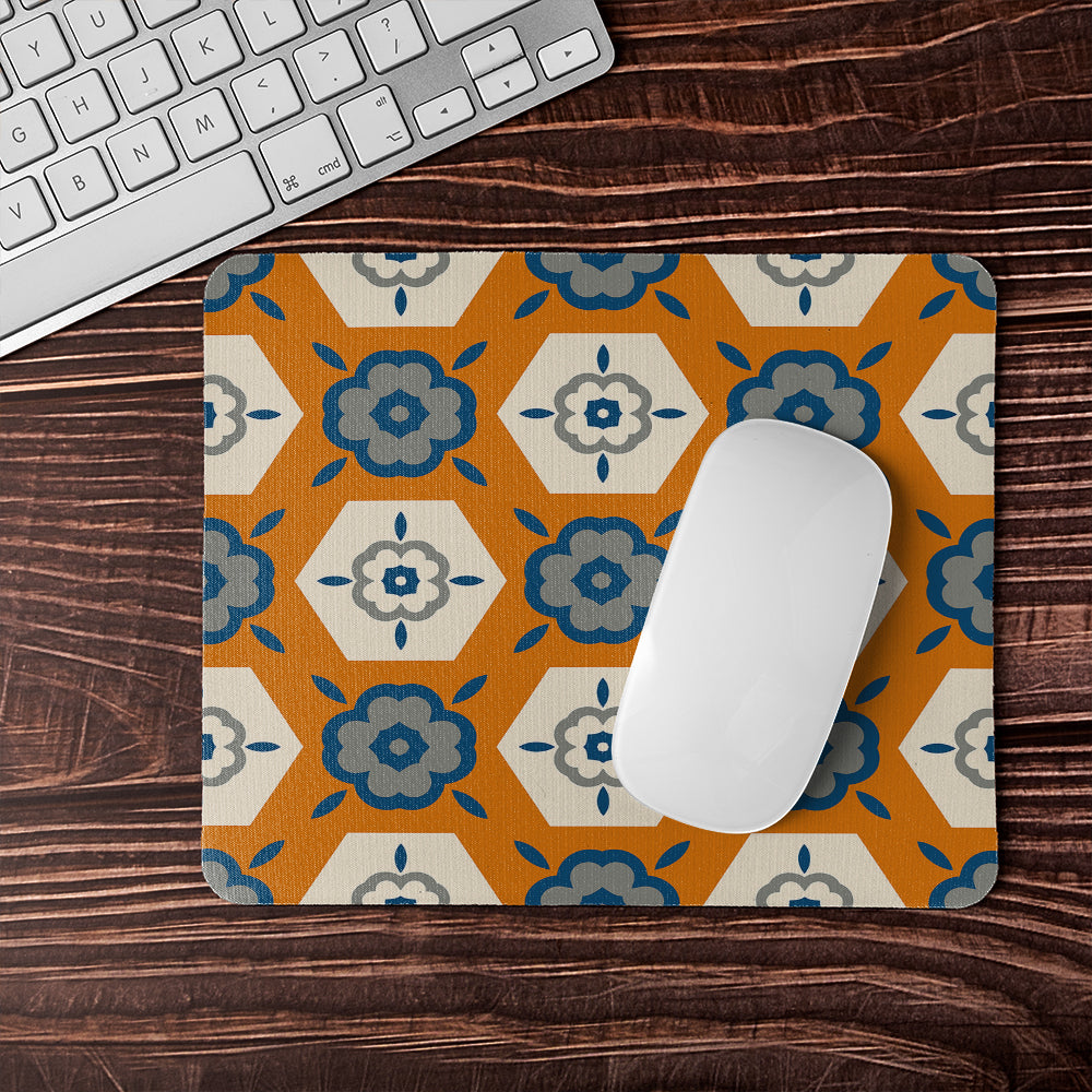 Rust Orange With Gray Navy Blue And Beige Mouse Mat is backordered and will ship as soon as it is back in stock.