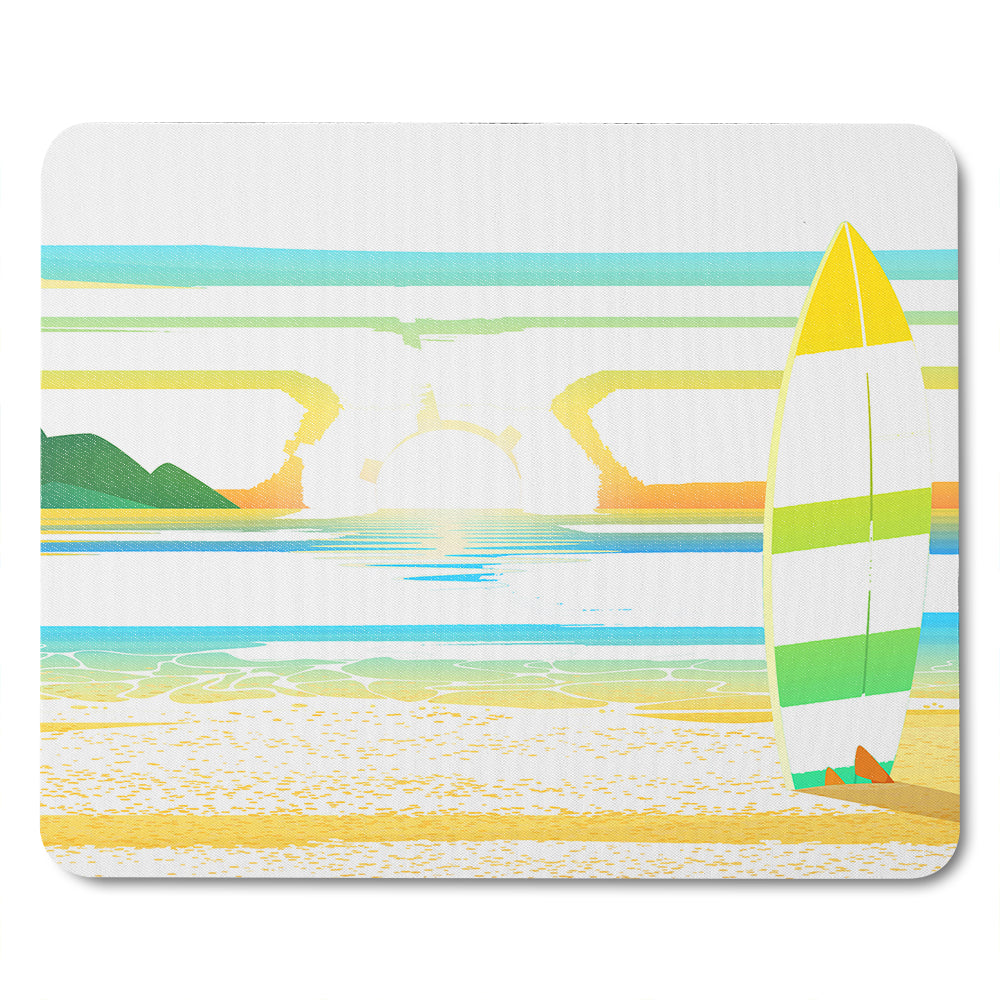 Surf Board On Beach Mouse Mat
