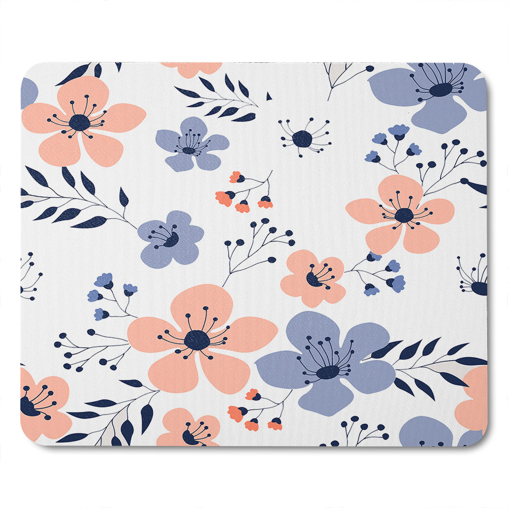 Pink & Blue Flowers Mouse Mat