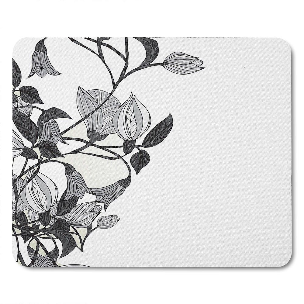 Black & White Flower Illustration Mouse Mat