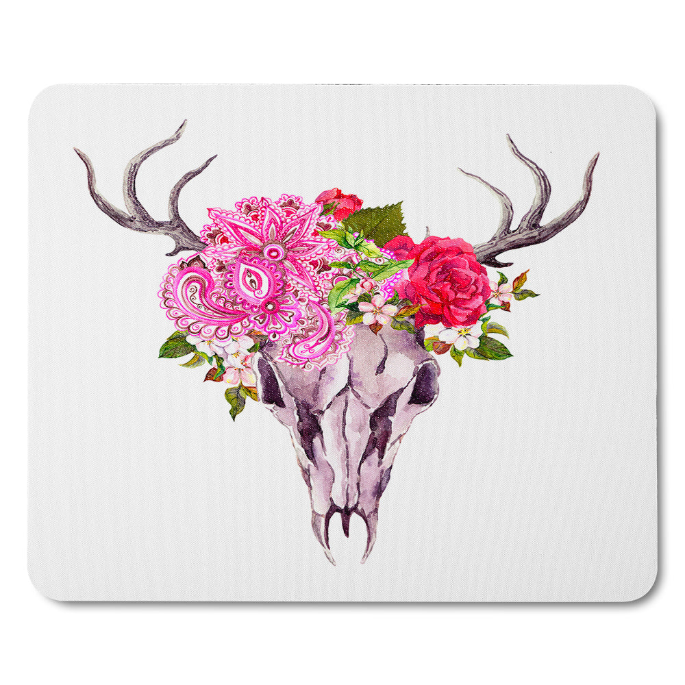 Deer Animal Skull With Flowers And Feathers Mouse Mat