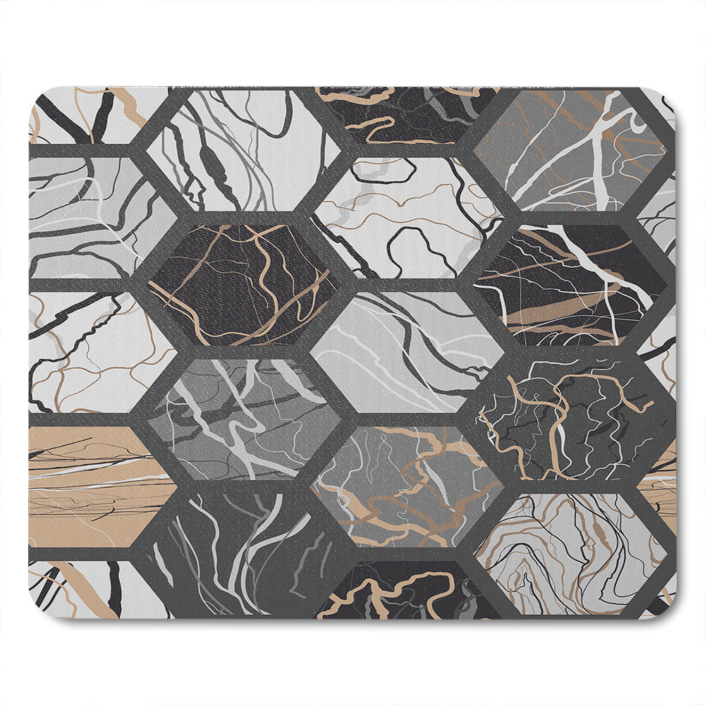 Geometric Marble Pattern With Gold Glitter Mouse Mat