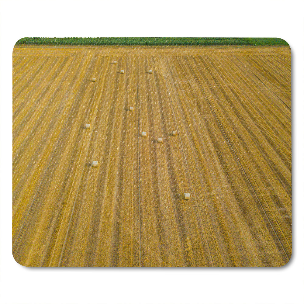 Straw bales of wheat lying on harvested field Designer Mouse Mat